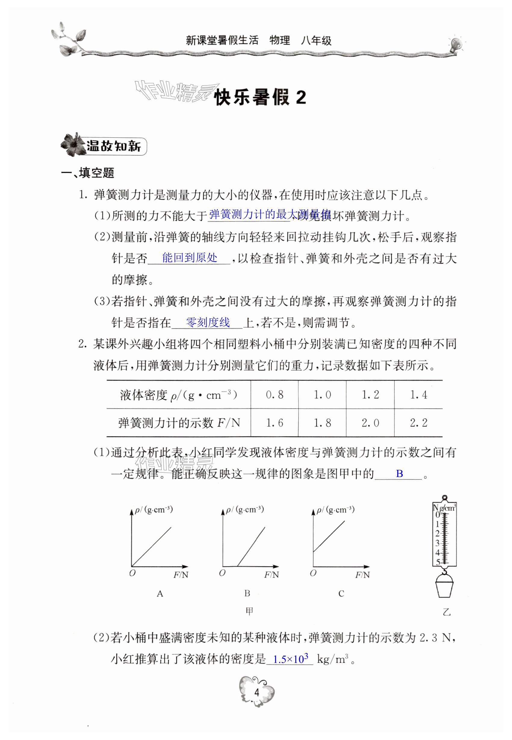 注:目前有些书本章节名称可能整理的还不是很完善,但都是按照顺序排列的,请同学们按照顺序仔细查找。练习册 2024年新课堂暑假生活八年级物理北京教育出版社 答案主要是用来给同学们做完题方便对答案用的,请勿直接抄袭。