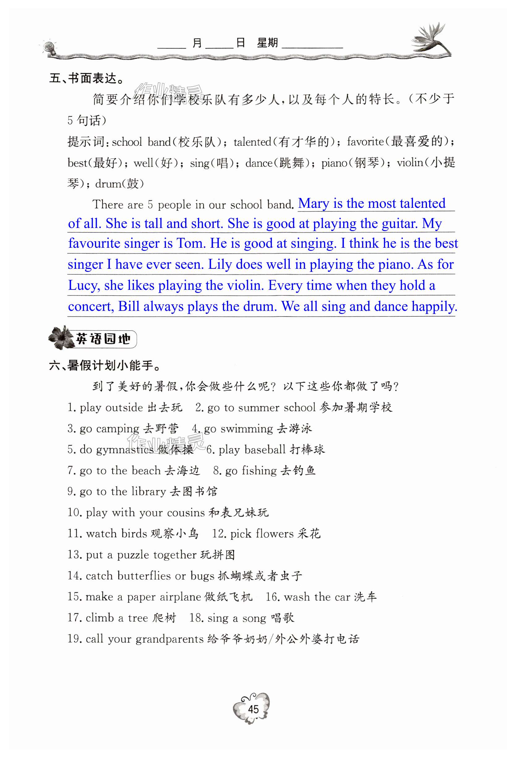 注:目前有些书本章节名称可能整理的还不是很完善,但都是按照顺序排列的,请同学们按照顺序仔细查找。练习册 2024年暑假生活七年级英语人教版北京教育出版社 答案主要是用来给同学们做完题方便对答案用的,请勿直接抄袭。