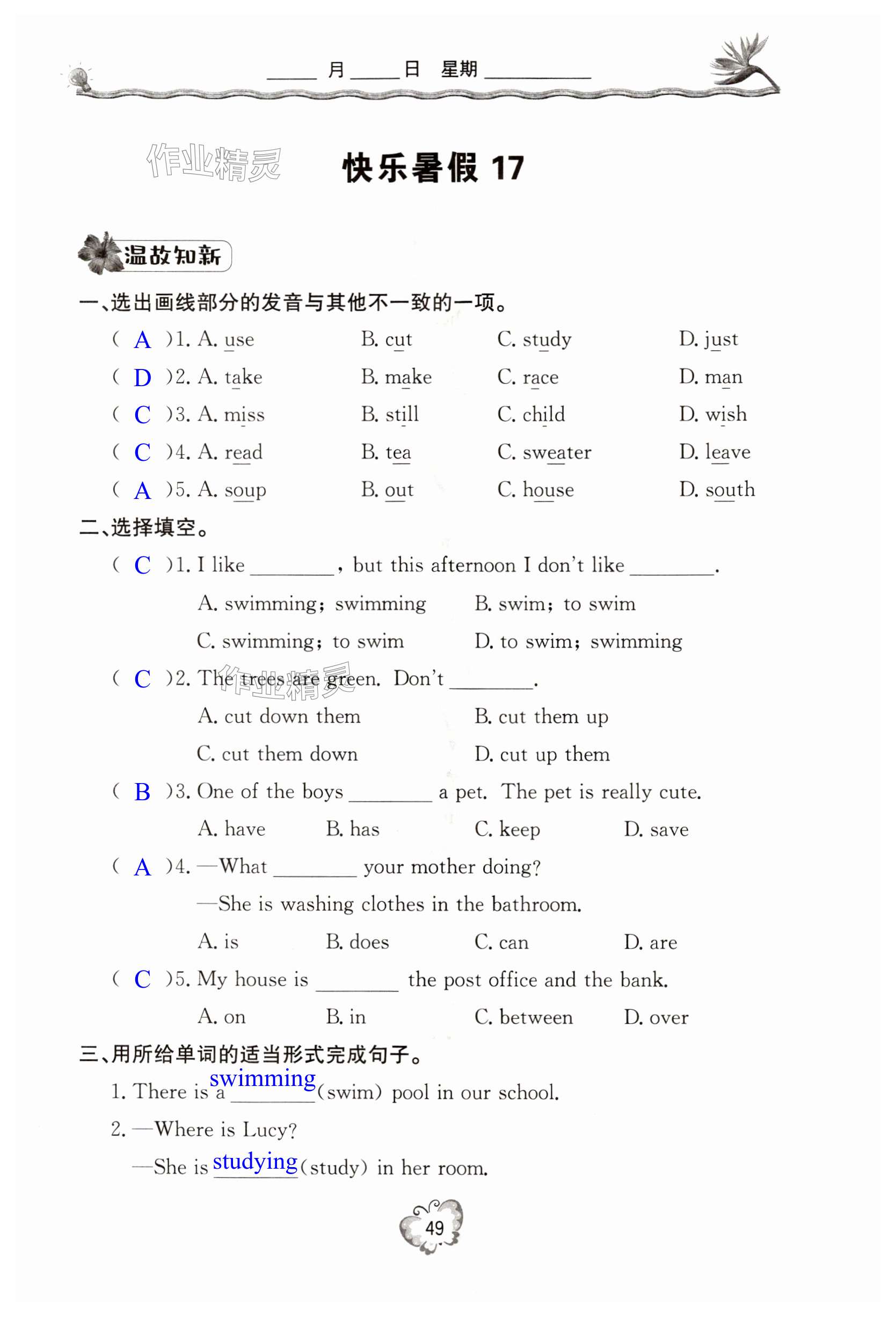 相关练习册答案