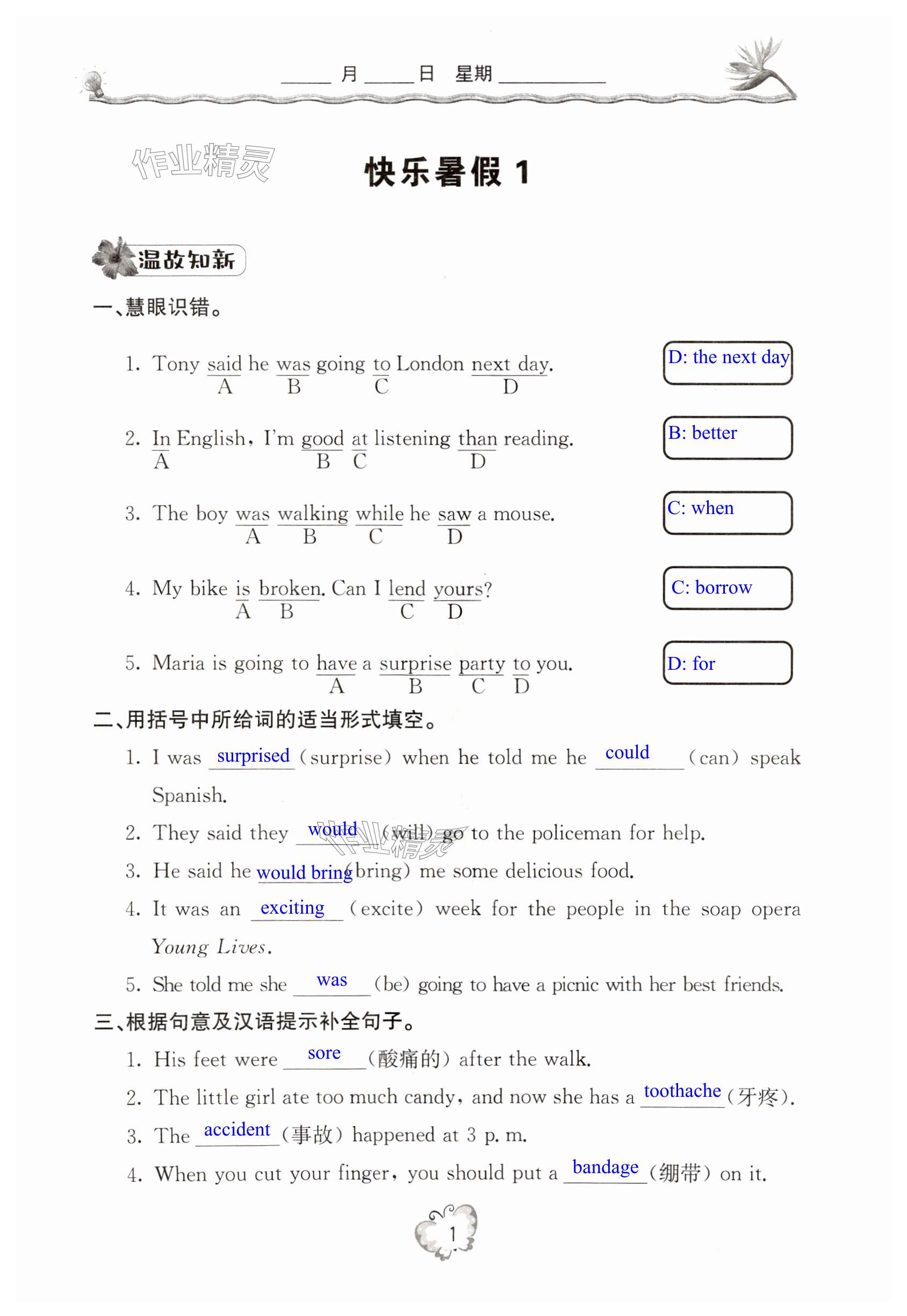 注:目前有些书本章节名称可能整理的还不是很完善,但都是按照顺序排列的,请同学们按照顺序仔细查找。练习册 2024年新课堂暑假生活八年级英语 答案主要是用来给同学们做完题方便对答案用的,请勿直接抄袭。
