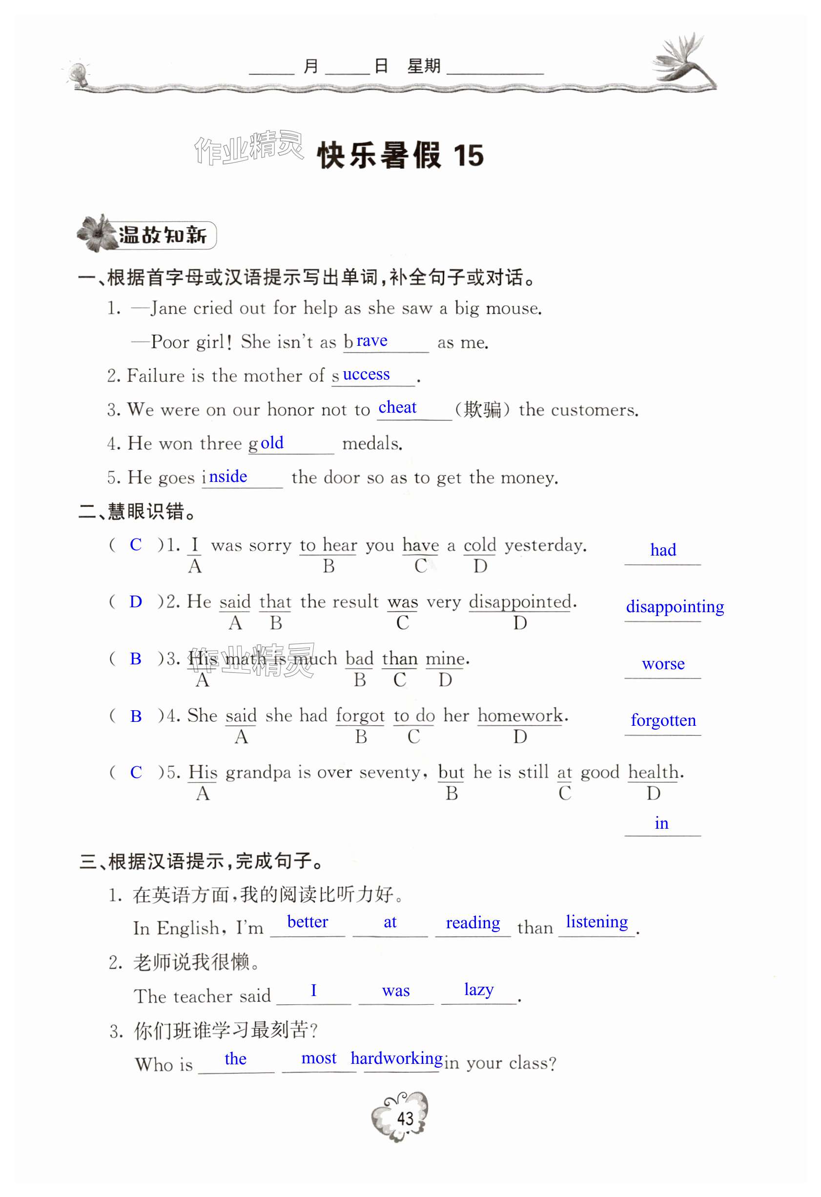 注:目前有些书本章节名称可能整理的还不是很完善,但都是按照顺序排列的,请同学们按照顺序仔细查找。练习册 2024年新课堂暑假生活八年级英语 答案主要是用来给同学们做完题方便对答案用的,请勿直接抄袭。