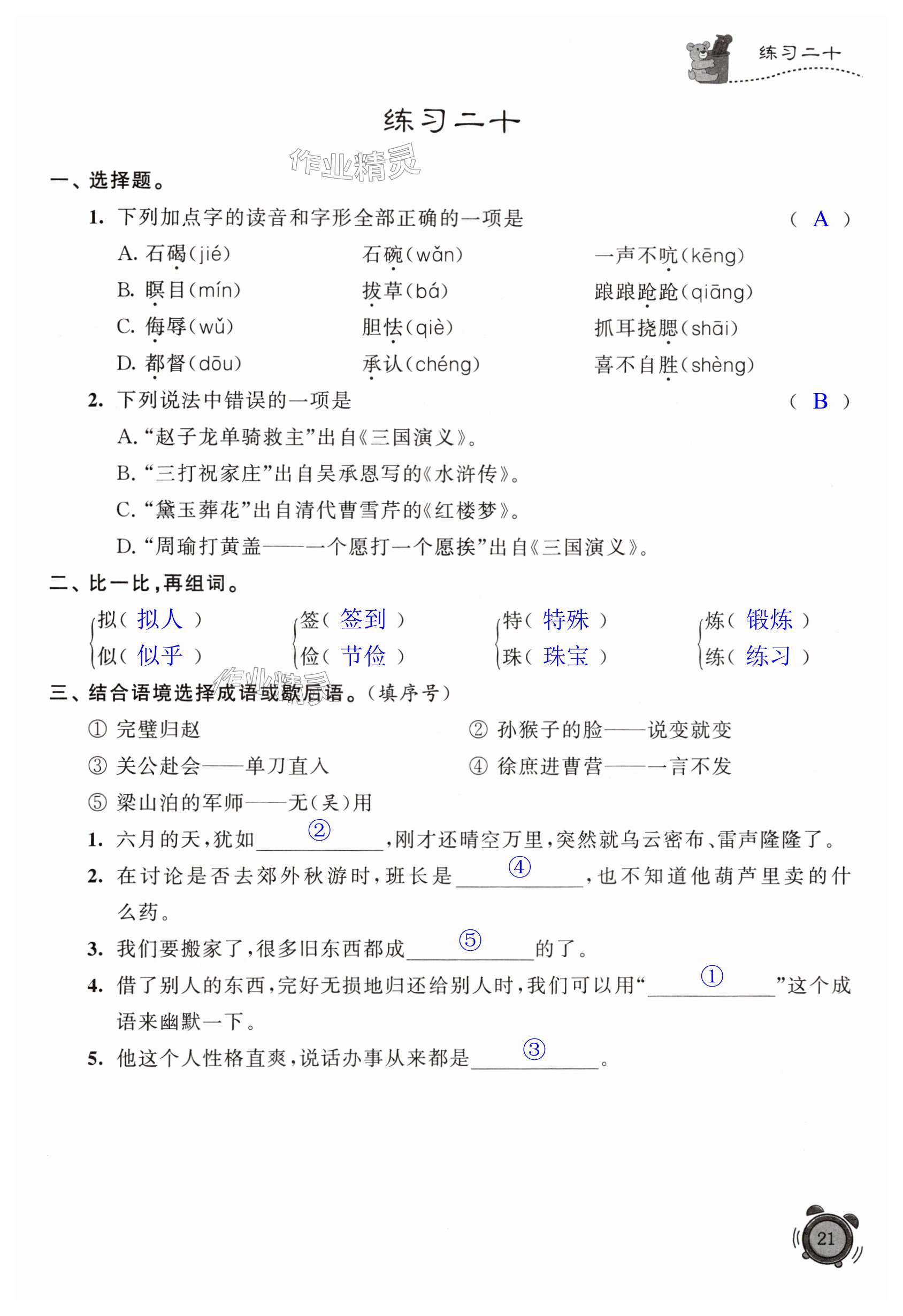 注:目前有些书本章节名称可能整理的还不是很完善,但都是按照顺序排列的,请同学们按照顺序仔细查找。练习册 2024年快乐假期小学语文暑假作业五年级江苏凤凰科学技术出版社 答案主要是用来给同学们做完题方便对答案用的,请勿直接抄袭。