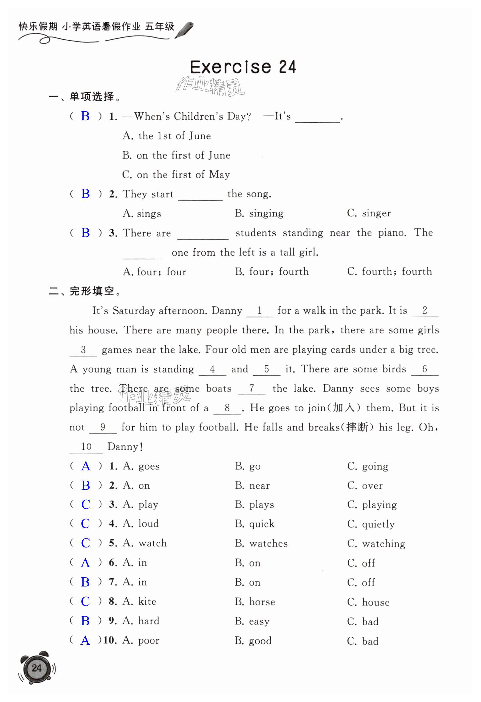 注:目前有些书本章节名称可能整理的还不是很完善,但都是按照顺序排列的,请同学们按照顺序仔细查找。练习册 2024年快乐假期小学英语暑假作业五年级江苏凤凰科学技术出版社 答案主要是用来给同学们做完题方便对答案用的,请勿直接抄袭。