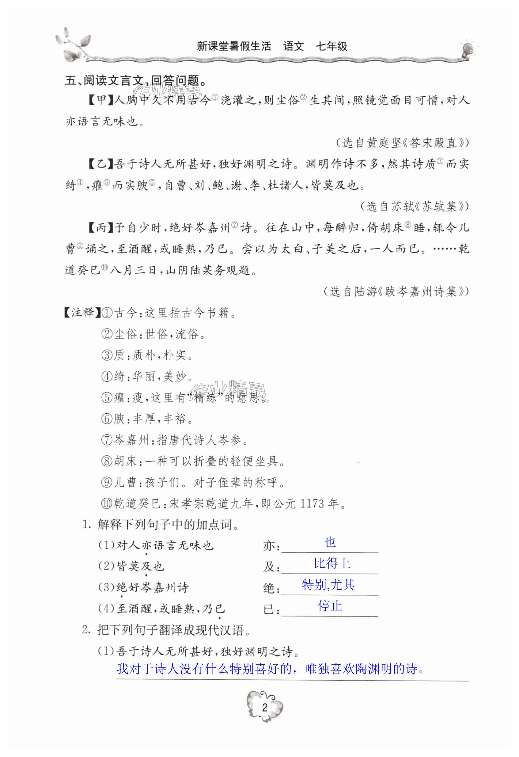 注:目前有些书本章节名称可能整理的还不是很完善,但都是按照顺序排列的,请同学们按照顺序仔细查找。练习册 2024年暑假生活七年级语文人教版北京教育出版社 答案主要是用来给同学们做完题方便对答案用的,请勿直接抄袭。