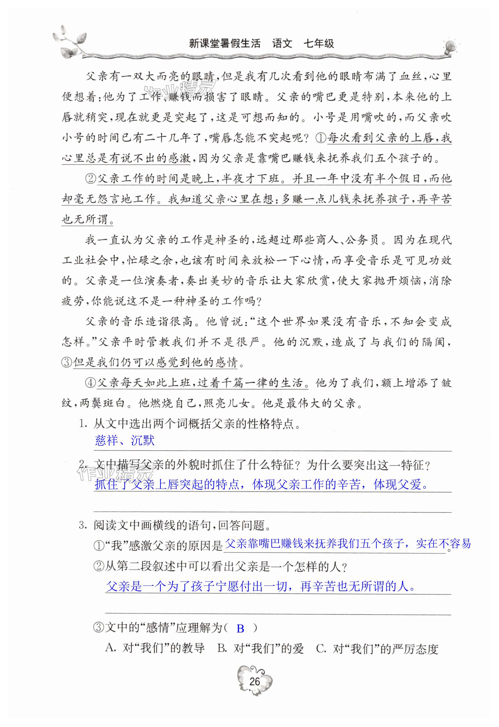注:目前有些书本章节名称可能整理的还不是很完善,但都是按照顺序排列的,请同学们按照顺序仔细查找。练习册 2024年暑假生活七年级语文人教版北京教育出版社 答案主要是用来给同学们做完题方便对答案用的,请勿直接抄袭。