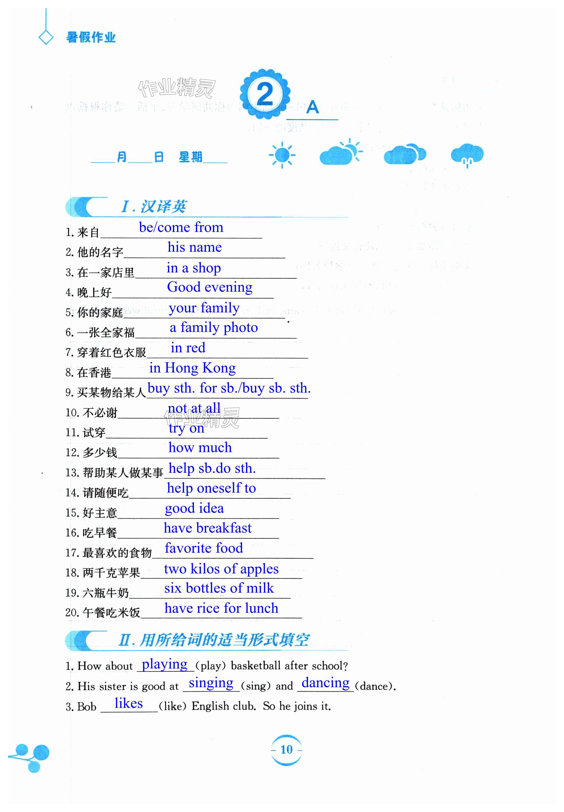 《2024年暑假作业安徽教育出版社七年级英语人教版》