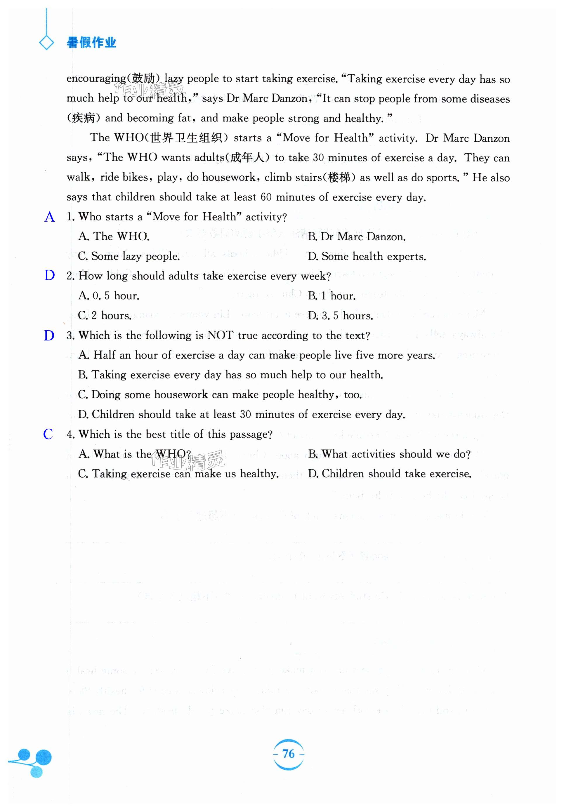 注:目前有些书本章节名称可能整理的还不是很完善,但都是按照顺序排列的,请同学们按照顺序仔细查找。练习册 2024年暑假作业安徽教育出版社七年级英语人教版 答案主要是用来给同学们做完题方便对答案用的,请勿直接抄袭。