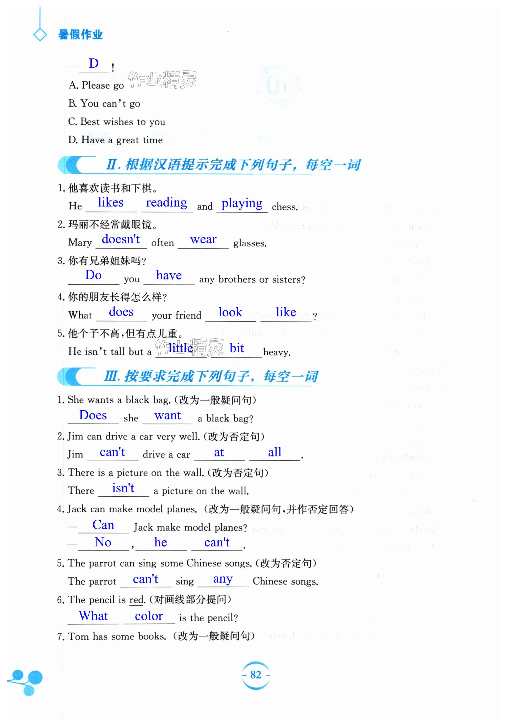 注:目前有些书本章节名称可能整理的还不是很完善,但都是按照顺序排列的,请同学们按照顺序仔细查找。练习册 2024年暑假作业安徽教育出版社七年级英语人教版 答案主要是用来给同学们做完题方便对答案用的,请勿直接抄袭。