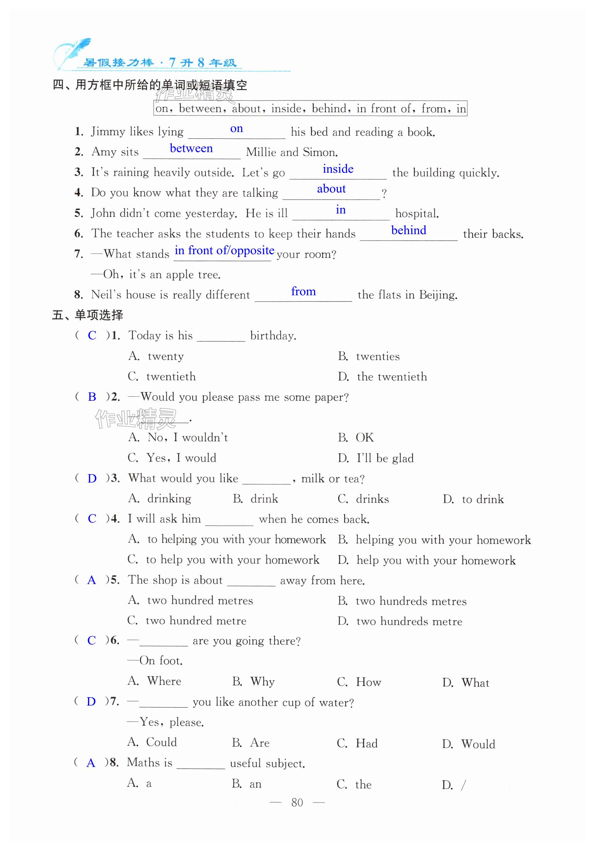 注:目前有些书本章节名称可能整理的还不是很完善,但都是按照顺序排列的,请同学们按照顺序仔细查找。练习册 2024年暑假接力棒南京大学出版社七升八综合篇 答案主要是用来给同学们做完题方便对答案用的,请勿直接抄袭。