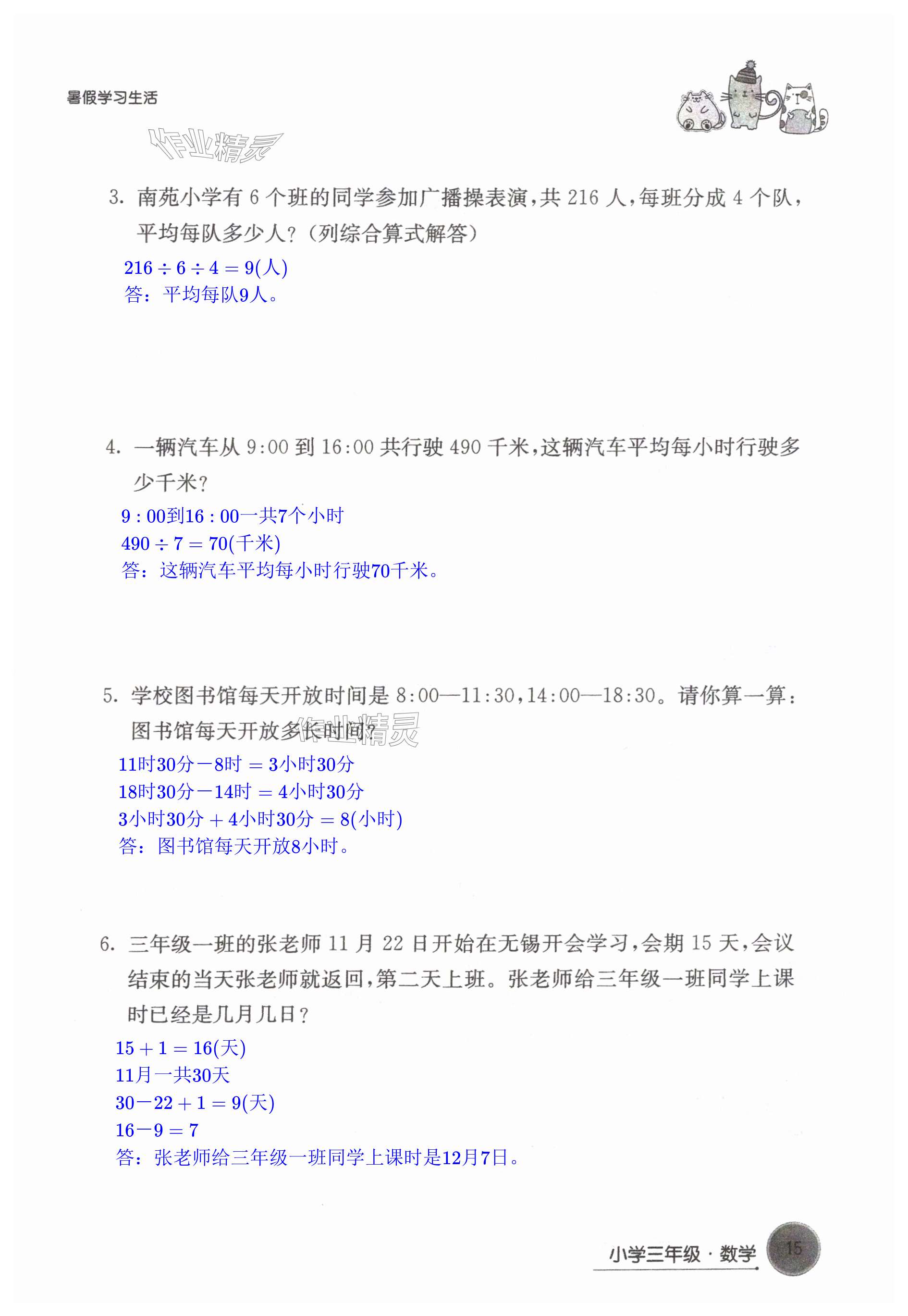 注:目前有些书本章节名称可能整理的还不是很完善,但都是按照顺序排列的,请同学们按照顺序仔细查找。练习册 2024年暑假学习生活译林出版社三年级数学 答案主要是用来给同学们做完题方便对答案用的,请勿直接抄袭。