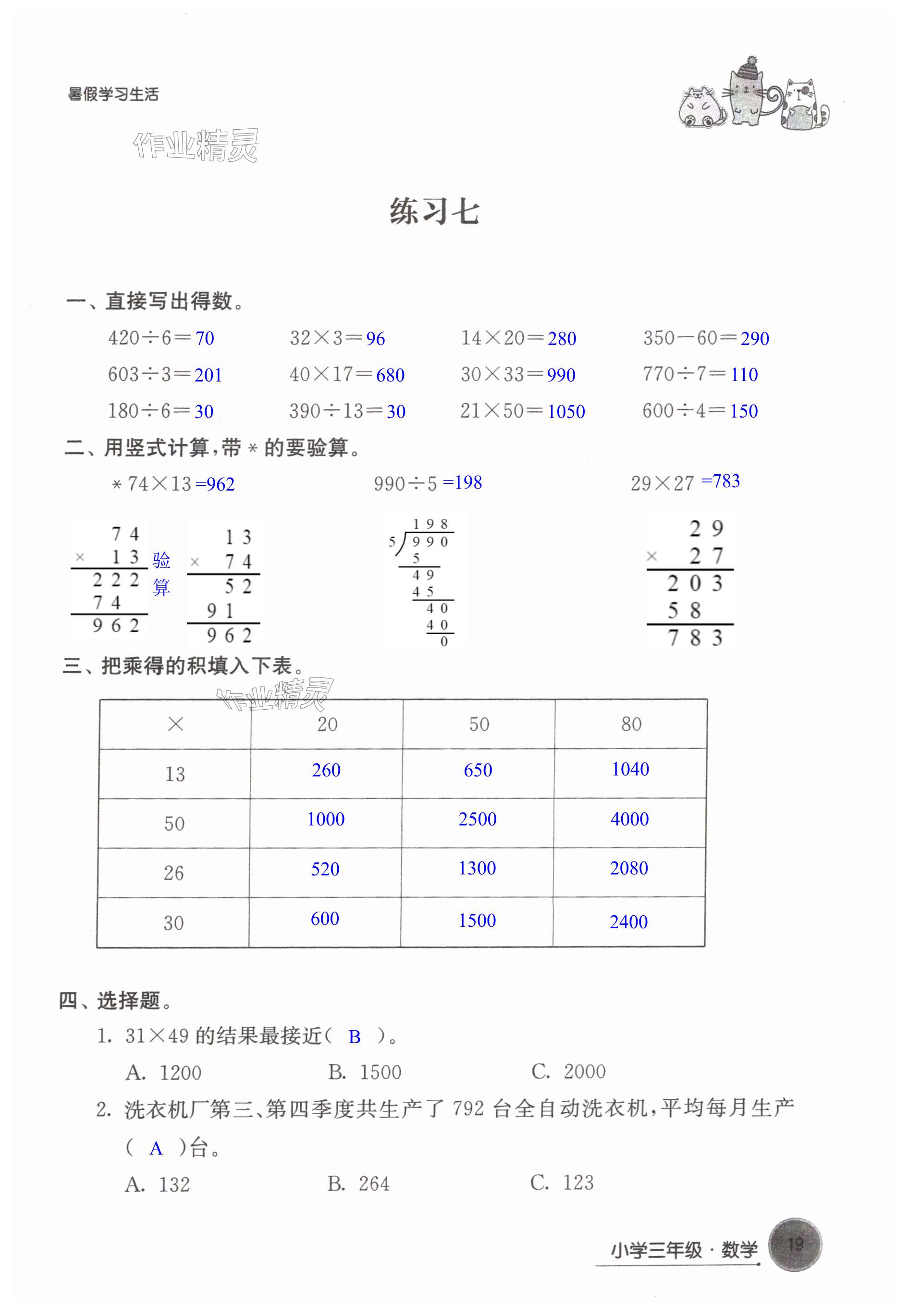 注:目前有些书本章节名称可能整理的还不是很完善,但都是按照顺序排列的,请同学们按照顺序仔细查找。练习册 2024年暑假学习生活译林出版社三年级数学 答案主要是用来给同学们做完题方便对答案用的,请勿直接抄袭。