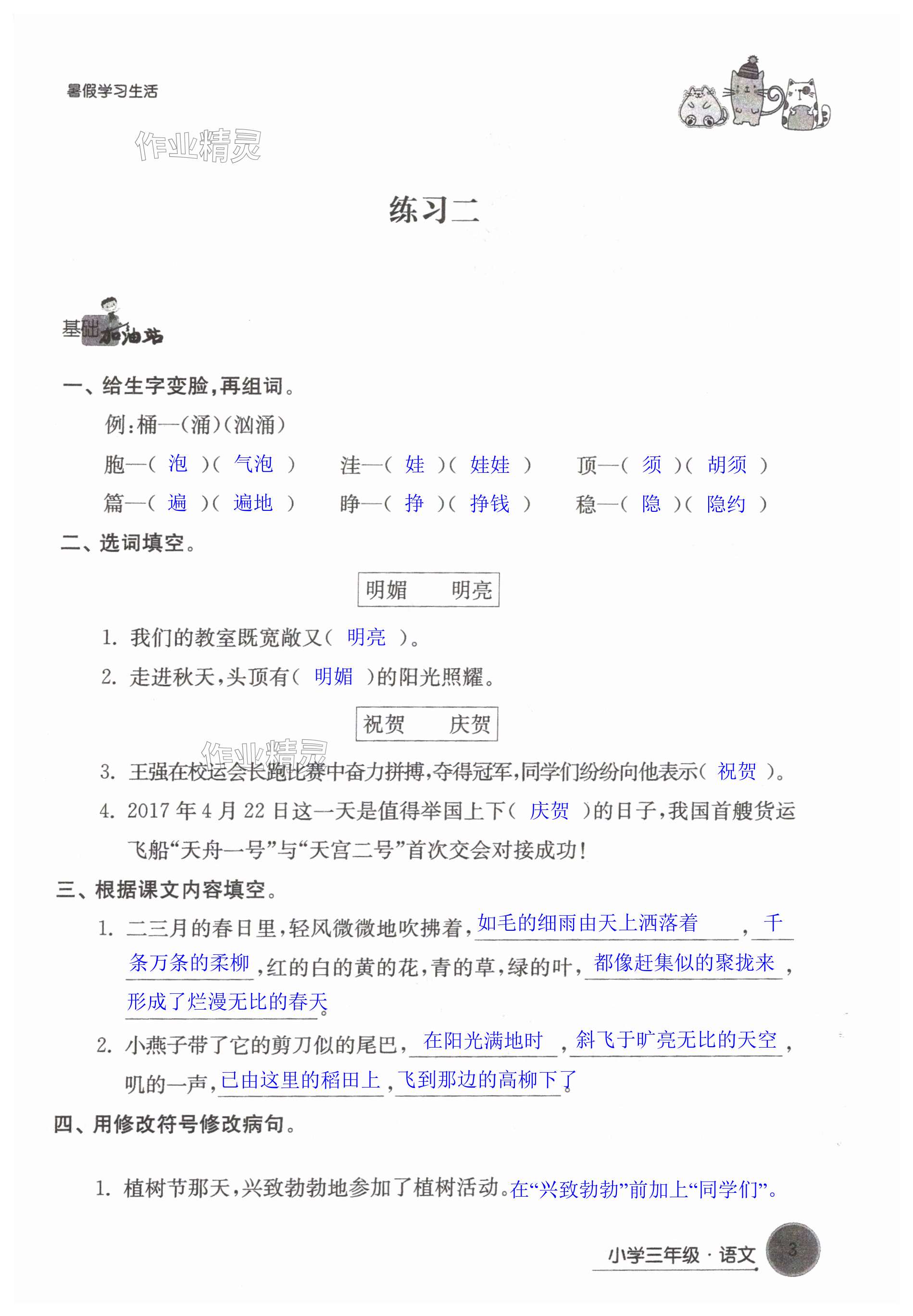 注:目前有些书本章节名称可能整理的还不是很完善,但都是按照顺序排列的,请同学们按照顺序仔细查找。练习册 2024年暑假学习生活译林出版社三年级语文 答案主要是用来给同学们做完题方便对答案用的,请勿直接抄袭。
