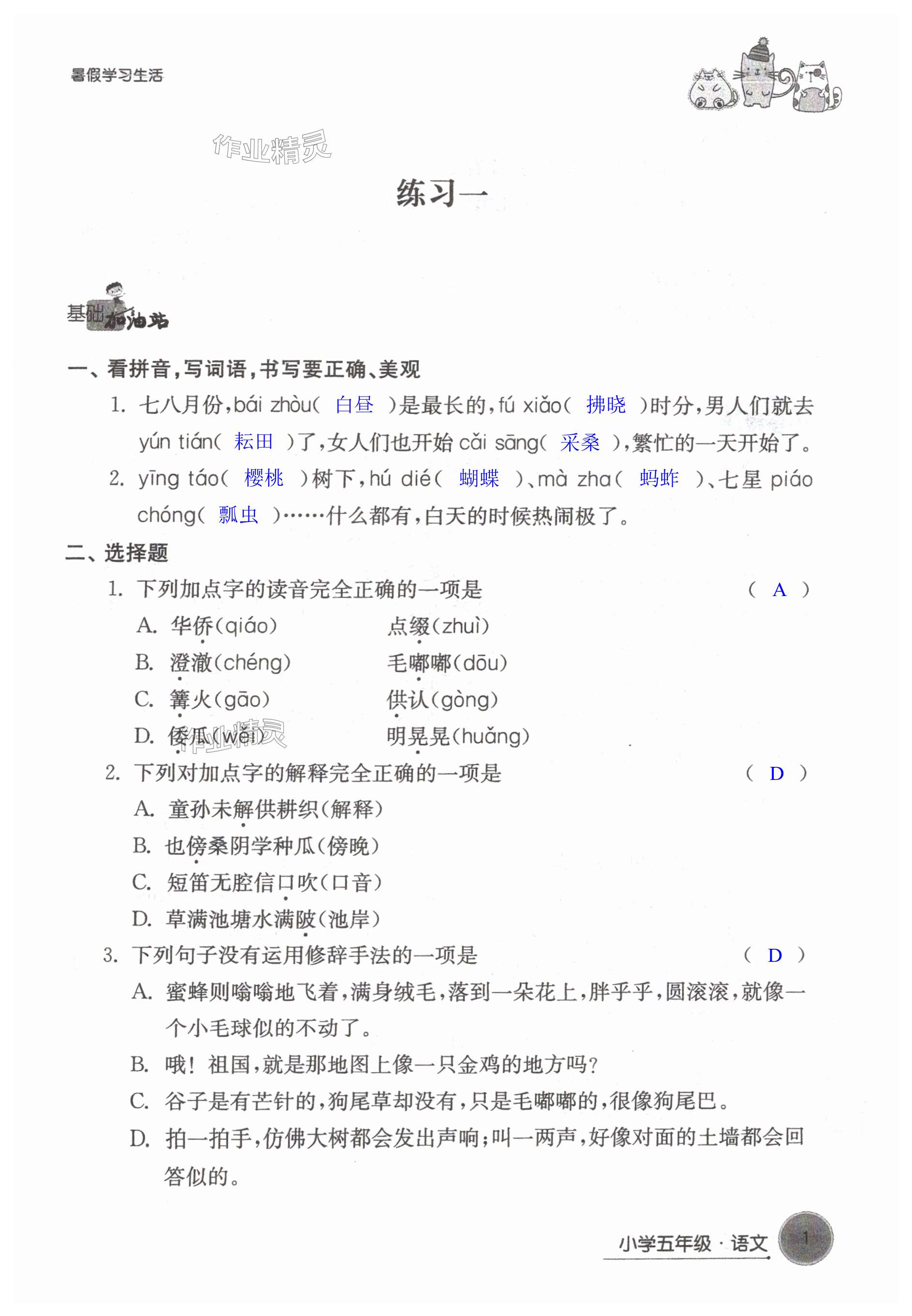 注:目前有些书本章节名称可能整理的还不是很完善,但都是按照顺序排列的,请同学们按照顺序仔细查找。练习册 2024年暑假学习生活五年级语文 答案主要是用来给同学们做完题方便对答案用的,请勿直接抄袭。