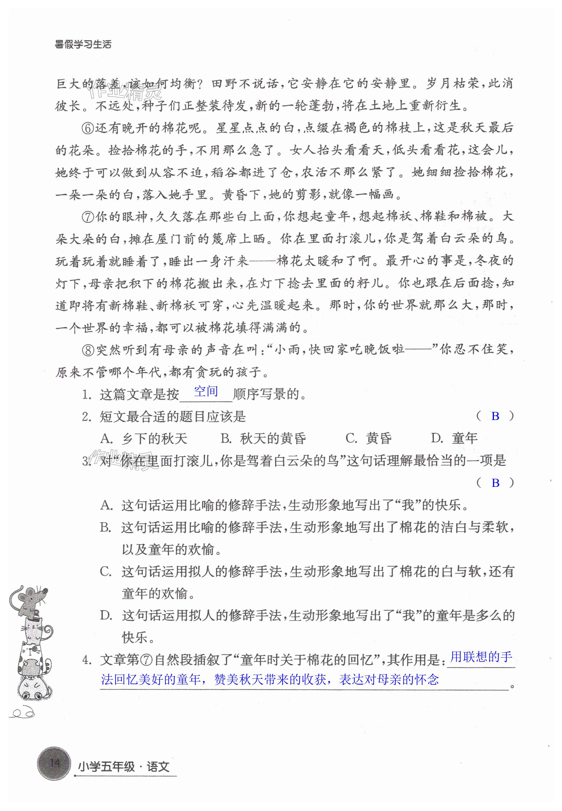 注:目前有些书本章节名称可能整理的还不是很完善,但都是按照顺序排列的,请同学们按照顺序仔细查找。练习册 2024年暑假学习生活五年级语文 答案主要是用来给同学们做完题方便对答案用的,请勿直接抄袭。