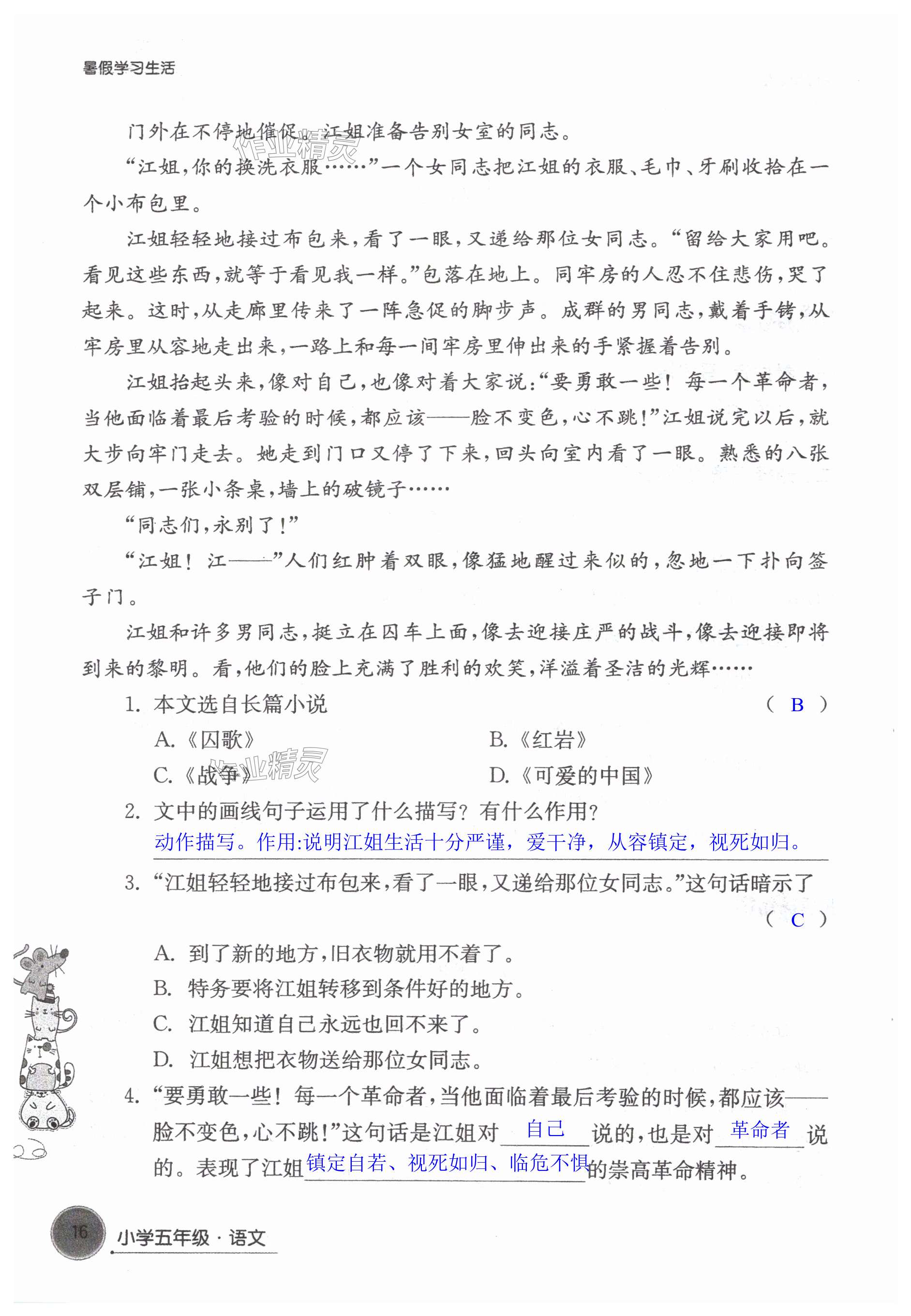 注:目前有些书本章节名称可能整理的还不是很完善,但都是按照顺序排列的,请同学们按照顺序仔细查找。练习册 2024年暑假学习生活五年级语文 答案主要是用来给同学们做完题方便对答案用的,请勿直接抄袭。