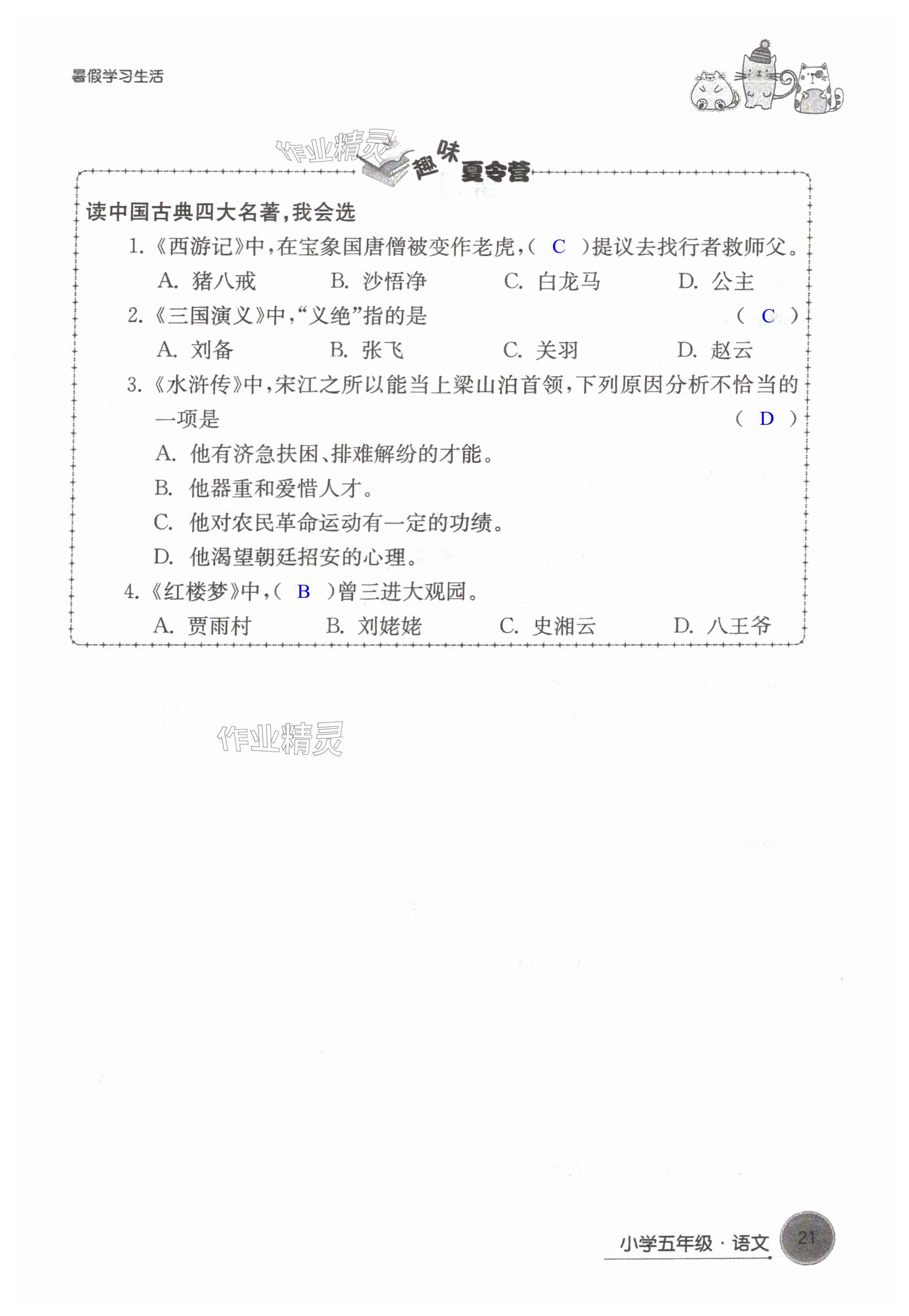 注:目前有些书本章节名称可能整理的还不是很完善,但都是按照顺序排列的,请同学们按照顺序仔细查找。练习册 2024年暑假学习生活五年级语文 答案主要是用来给同学们做完题方便对答案用的,请勿直接抄袭。