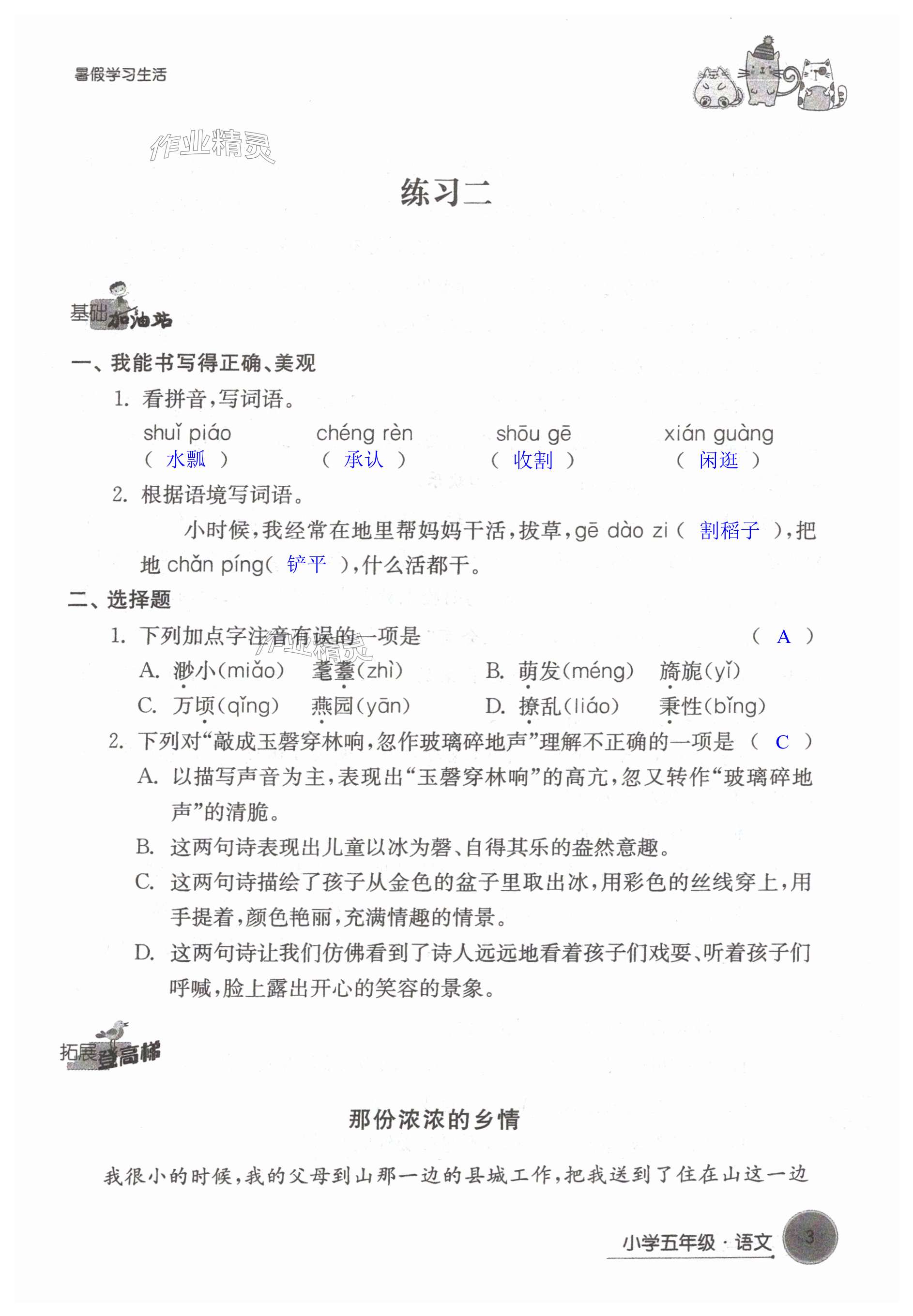 注:目前有些书本章节名称可能整理的还不是很完善,但都是按照顺序排列的,请同学们按照顺序仔细查找。练习册 2024年暑假学习生活五年级语文 答案主要是用来给同学们做完题方便对答案用的,请勿直接抄袭。