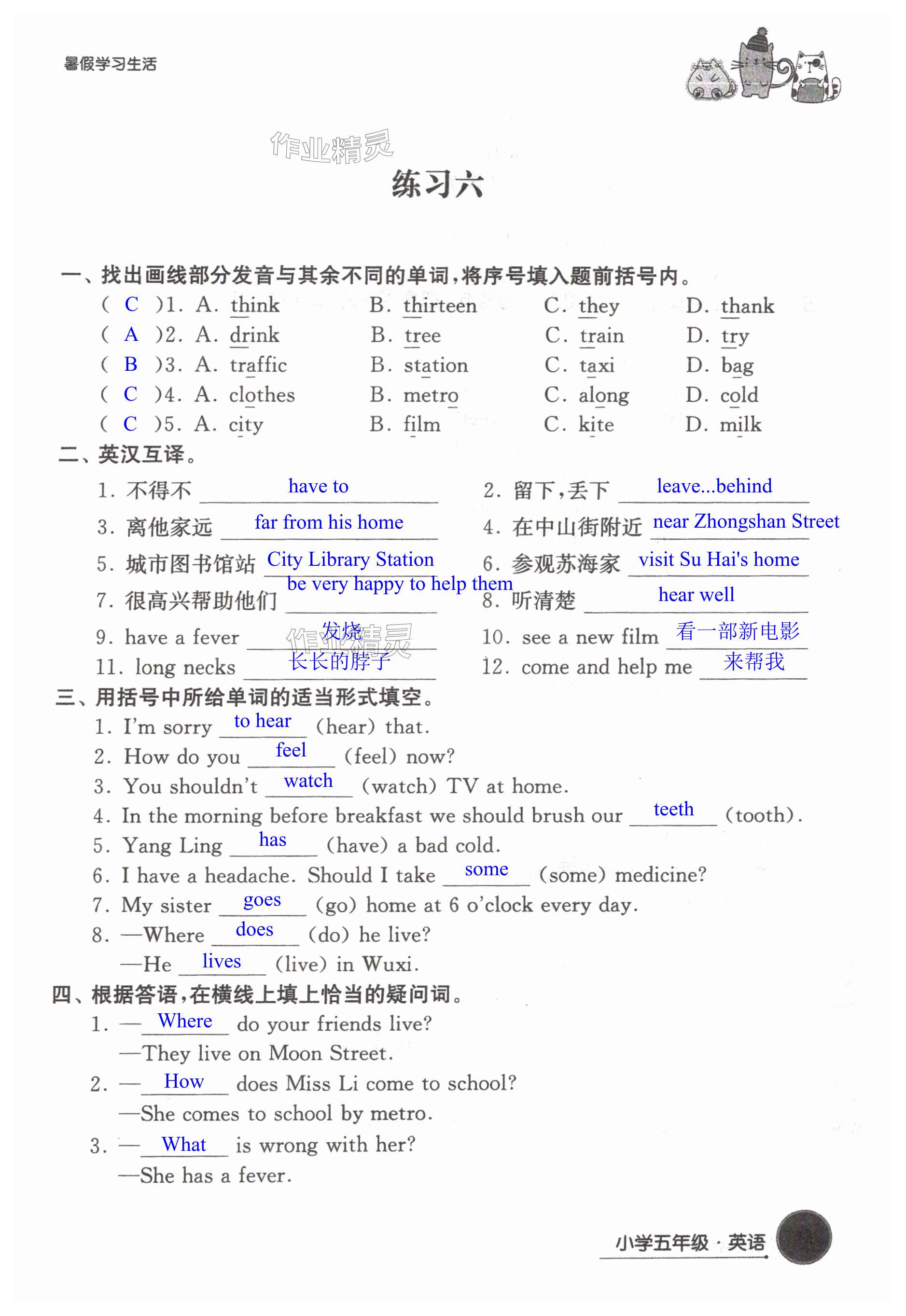 注:目前有些书本章节名称可能整理的还不是很完善,但都是按照顺序排列的,请同学们按照顺序仔细查找。练习册 2024年暑假学习生活译林出版社五年级英语 答案主要是用来给同学们做完题方便对答案用的,请勿直接抄袭。