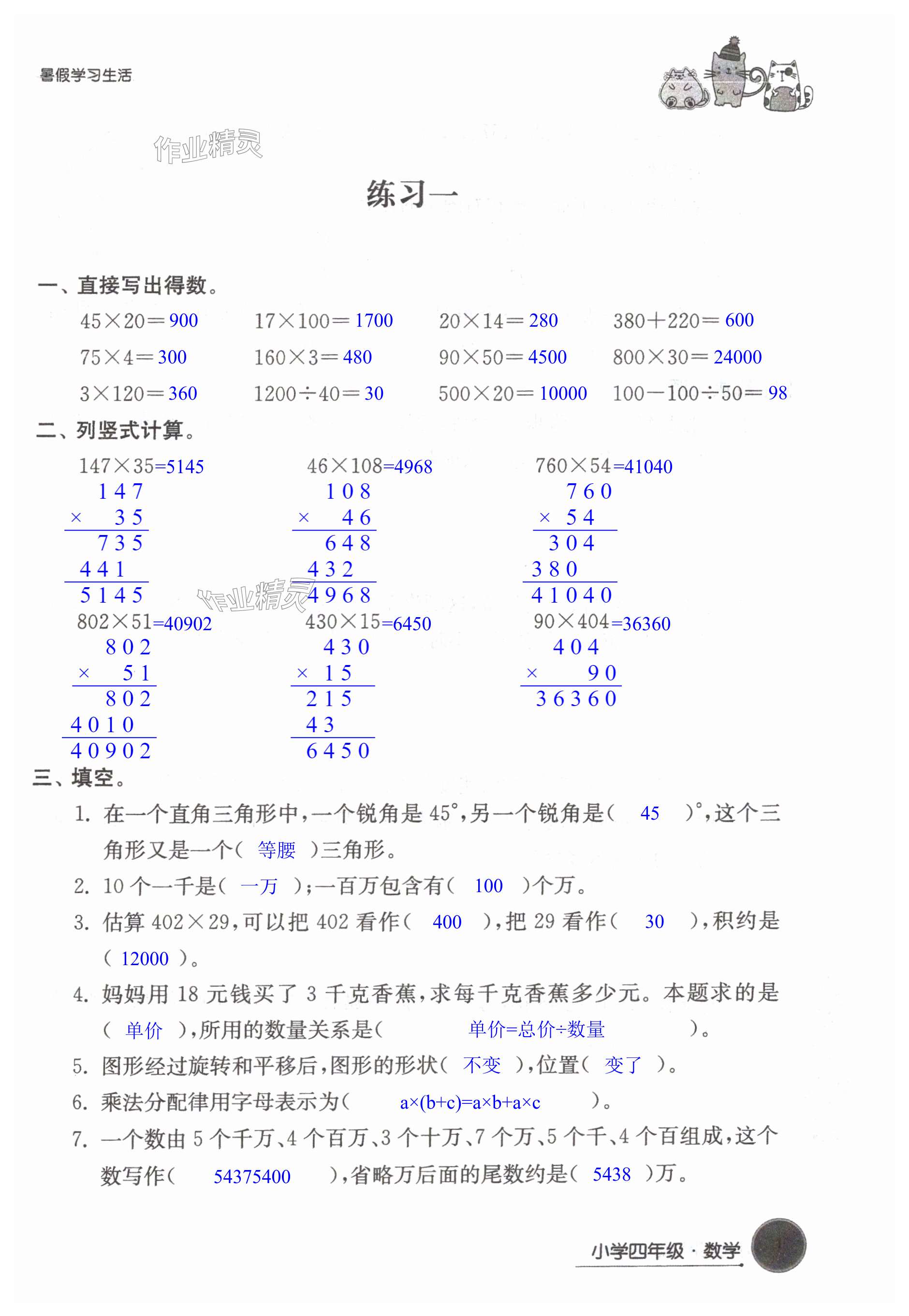 注:目前有些书本章节名称可能整理的还不是很完善,但都是按照顺序排列的,请同学们按照顺序仔细查找。练习册 2024年暑假学习生活译林出版社四年级数学 答案主要是用来给同学们做完题方便对答案用的,请勿直接抄袭。