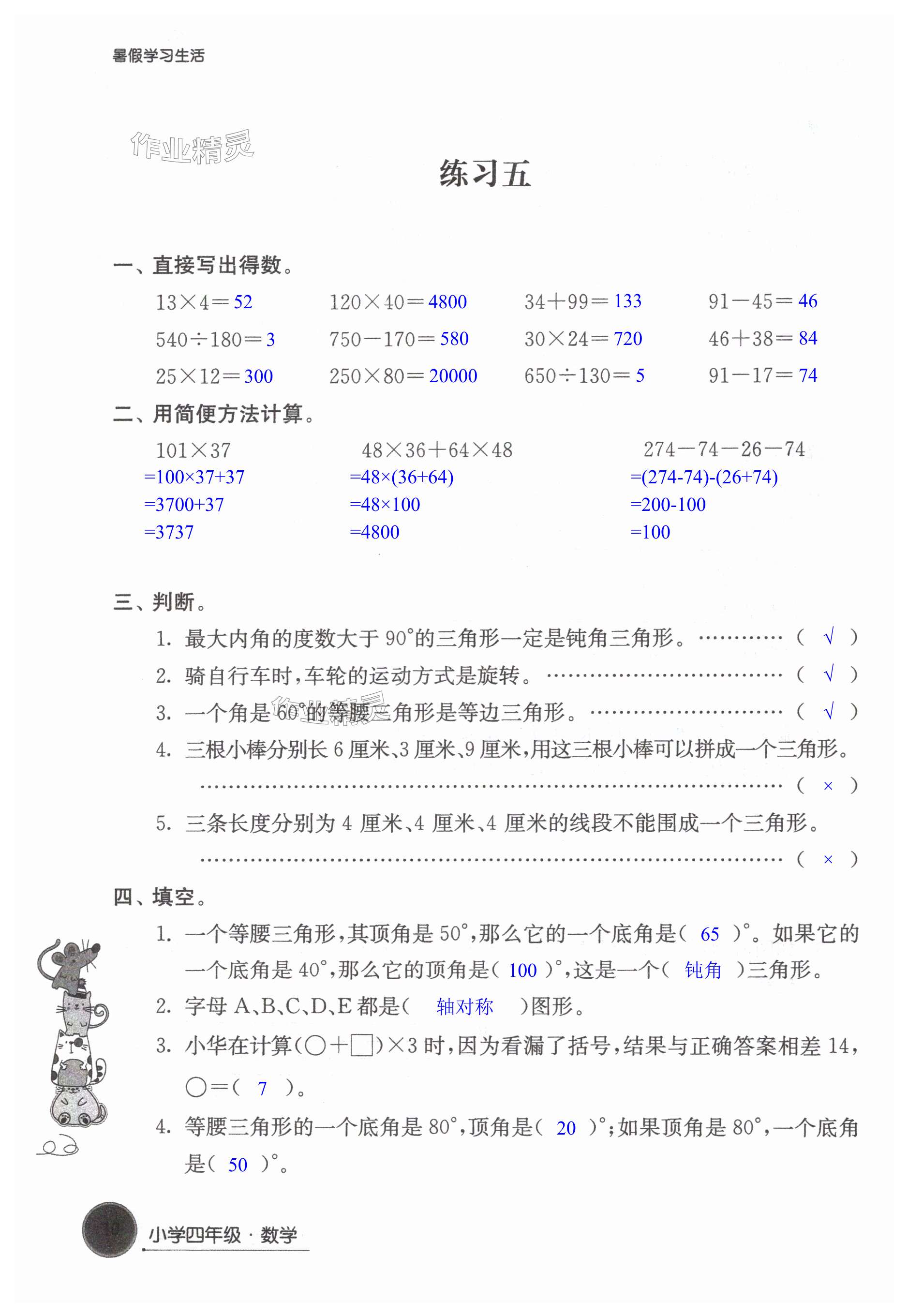 注:目前有些书本章节名称可能整理的还不是很完善,但都是按照顺序排列的,请同学们按照顺序仔细查找。练习册 2024年暑假学习生活译林出版社四年级数学 答案主要是用来给同学们做完题方便对答案用的,请勿直接抄袭。