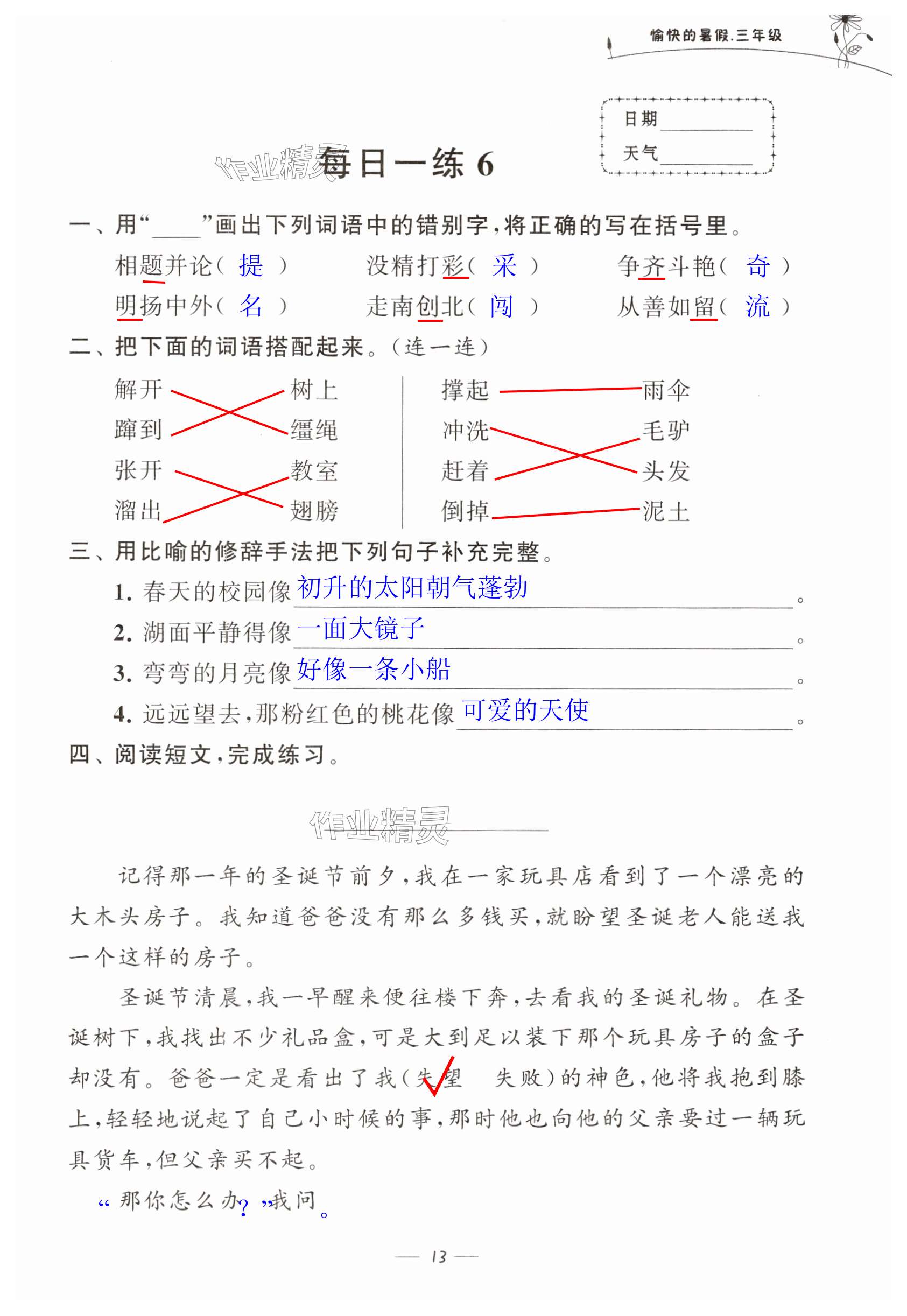 注:目前有些书本章节名称可能整理的还不是很完善,但都是按照顺序排列的,请同学们按照顺序仔细查找。练习册 2024年愉快的暑假江苏凤凰美术出版社三年级 答案主要是用来给同学们做完题方便对答案用的,请勿直接抄袭。