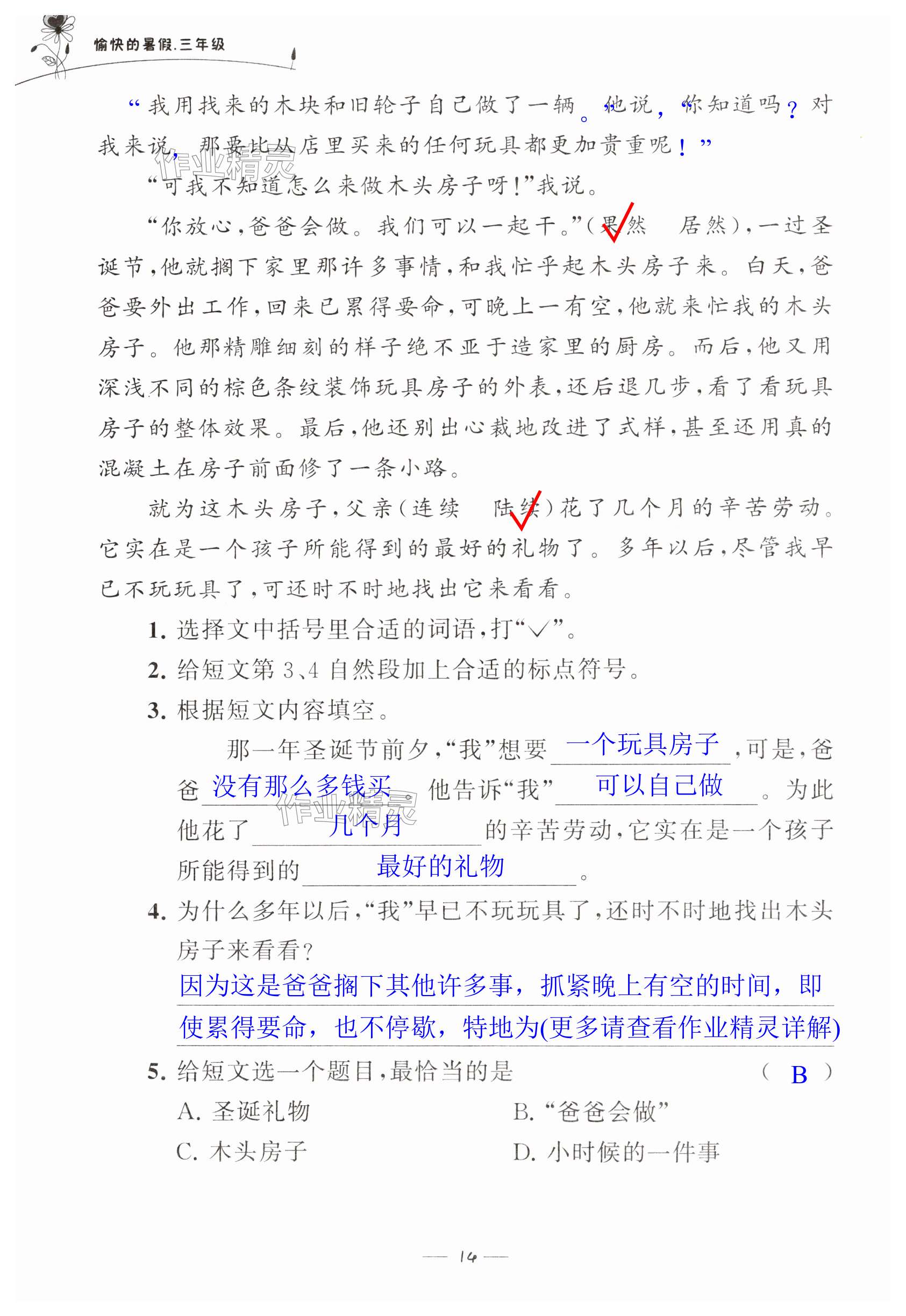 注:目前有些书本章节名称可能整理的还不是很完善,但都是按照顺序排列的,请同学们按照顺序仔细查找。练习册 2024年愉快的暑假江苏凤凰美术出版社三年级 答案主要是用来给同学们做完题方便对答案用的,请勿直接抄袭。