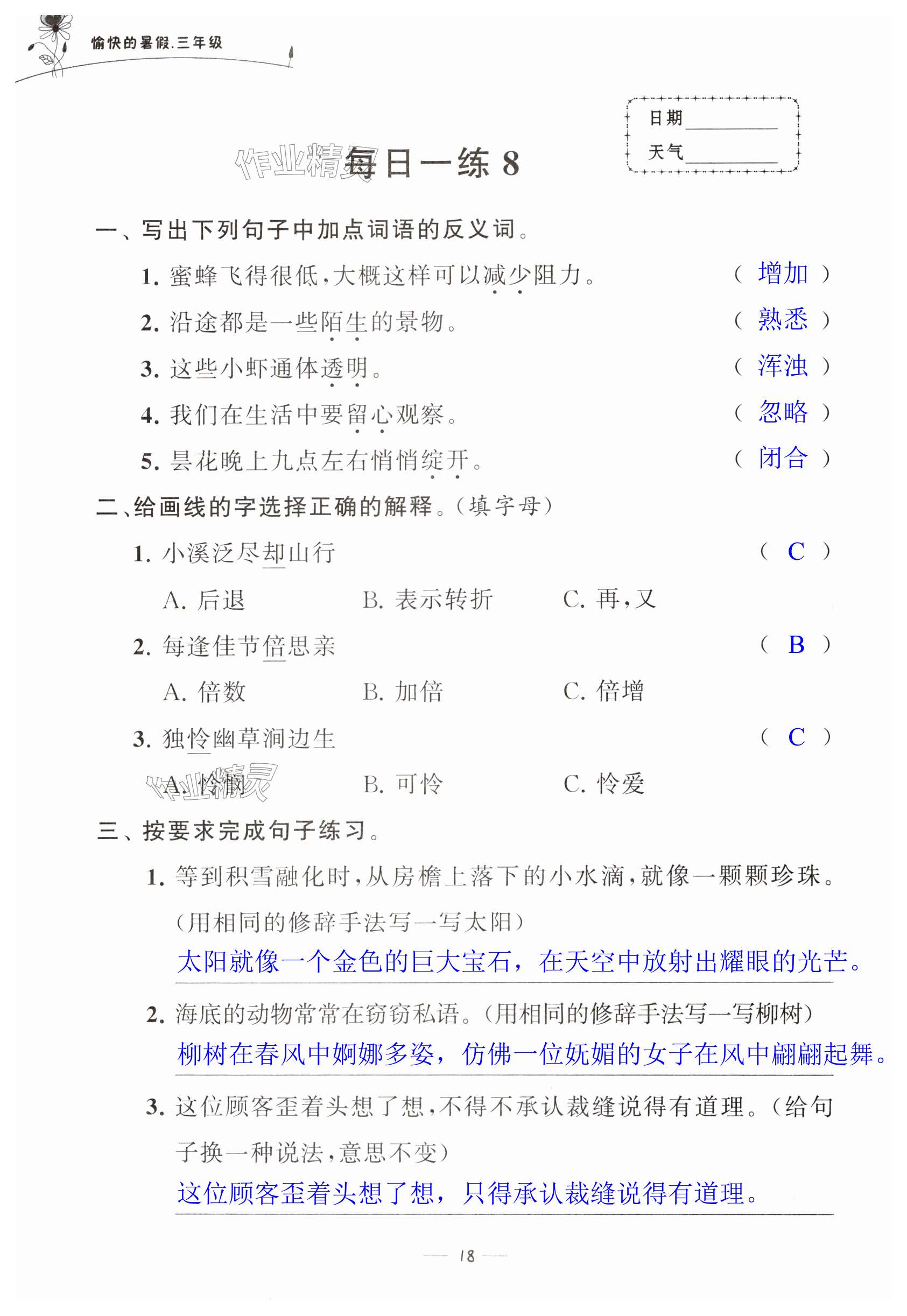 注:目前有些书本章节名称可能整理的还不是很完善,但都是按照顺序排列的,请同学们按照顺序仔细查找。练习册 2024年愉快的暑假江苏凤凰美术出版社三年级 答案主要是用来给同学们做完题方便对答案用的,请勿直接抄袭。
