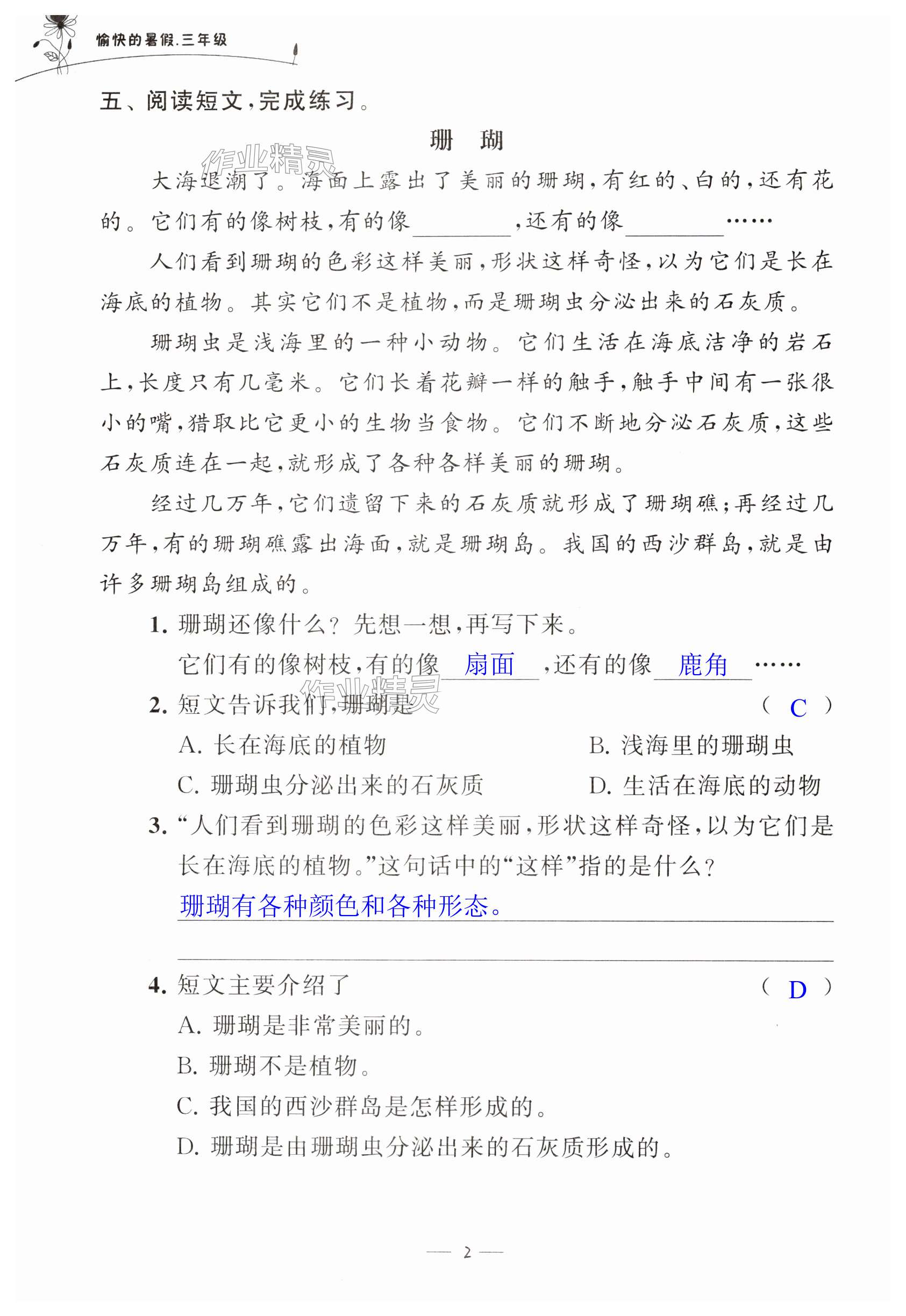 注:目前有些书本章节名称可能整理的还不是很完善,但都是按照顺序排列的,请同学们按照顺序仔细查找。练习册 2024年愉快的暑假江苏凤凰美术出版社三年级 答案主要是用来给同学们做完题方便对答案用的,请勿直接抄袭。