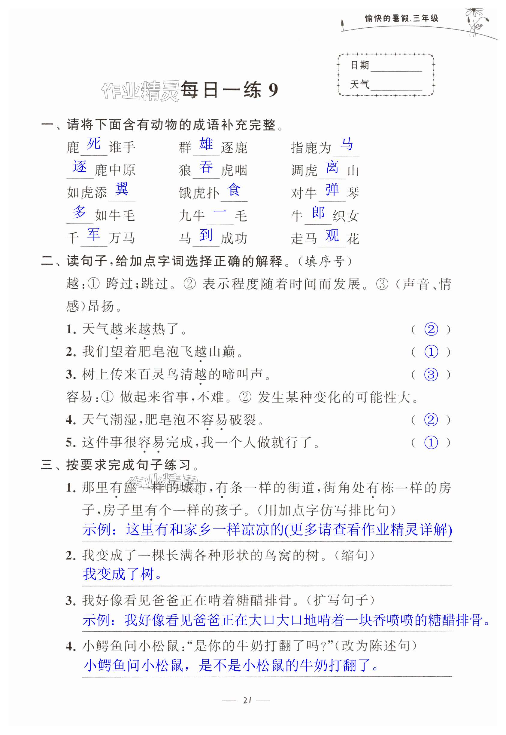 注:目前有些书本章节名称可能整理的还不是很完善,但都是按照顺序排列的,请同学们按照顺序仔细查找。练习册 2024年愉快的暑假江苏凤凰美术出版社三年级 答案主要是用来给同学们做完题方便对答案用的,请勿直接抄袭。