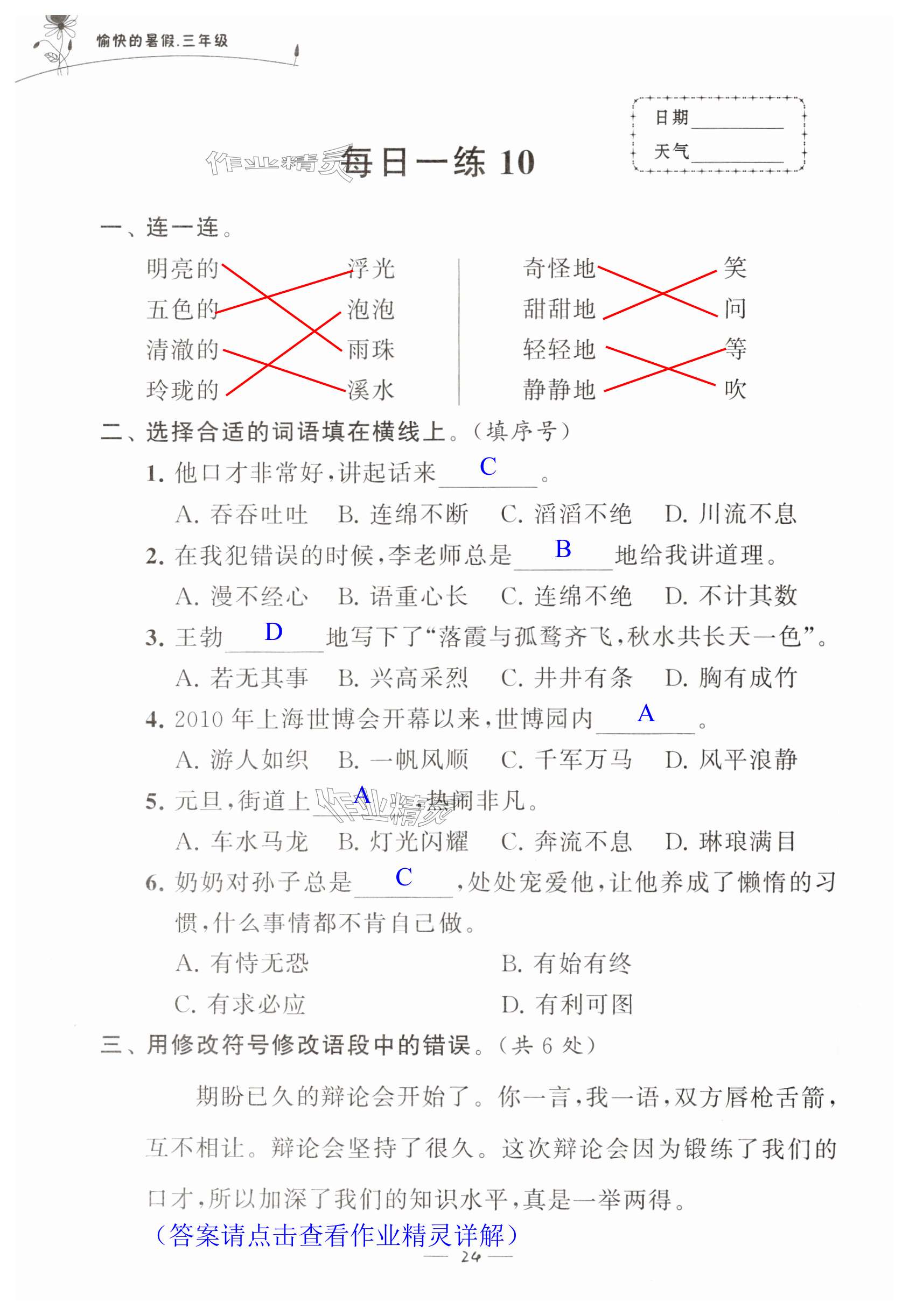 注:目前有些书本章节名称可能整理的还不是很完善,但都是按照顺序排列的,请同学们按照顺序仔细查找。练习册 2024年愉快的暑假江苏凤凰美术出版社三年级 答案主要是用来给同学们做完题方便对答案用的,请勿直接抄袭。