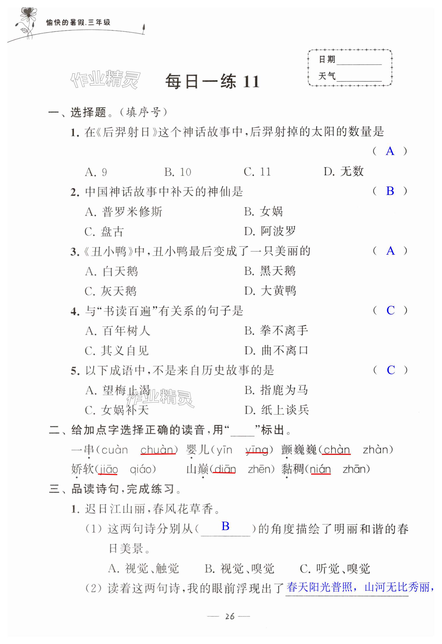 注:目前有些书本章节名称可能整理的还不是很完善,但都是按照顺序排列的,请同学们按照顺序仔细查找。练习册 2024年愉快的暑假江苏凤凰美术出版社三年级 答案主要是用来给同学们做完题方便对答案用的,请勿直接抄袭。