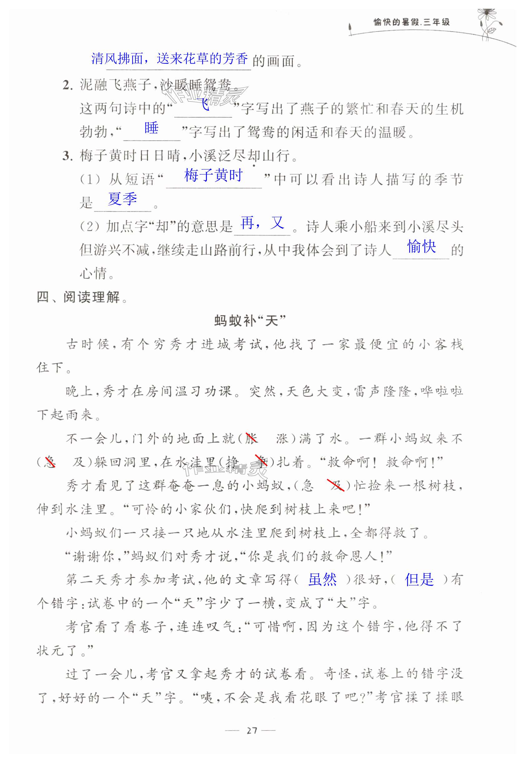注:目前有些书本章节名称可能整理的还不是很完善,但都是按照顺序排列的,请同学们按照顺序仔细查找。练习册 2024年愉快的暑假江苏凤凰美术出版社三年级 答案主要是用来给同学们做完题方便对答案用的,请勿直接抄袭。