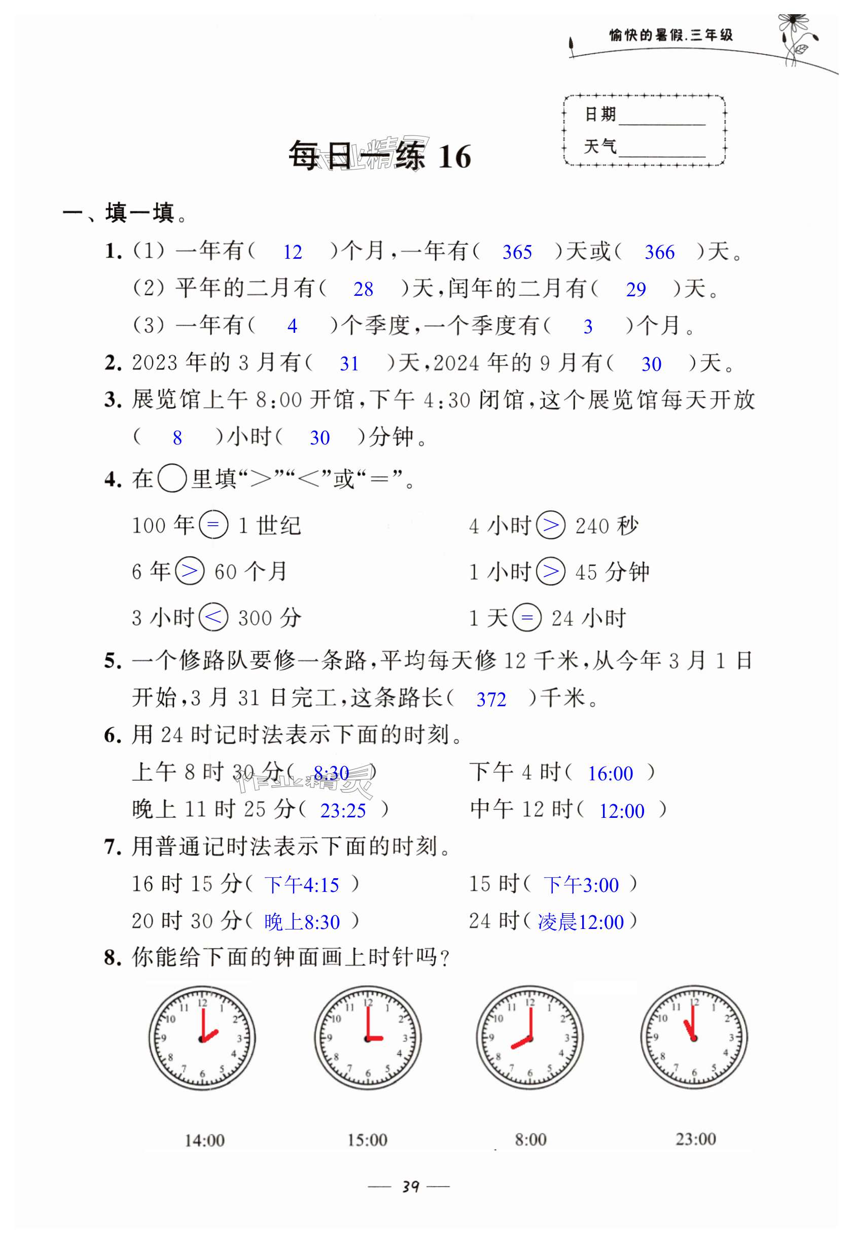 注:目前有些书本章节名称可能整理的还不是很完善,但都是按照顺序排列的,请同学们按照顺序仔细查找。练习册 2024年愉快的暑假江苏凤凰美术出版社三年级 答案主要是用来给同学们做完题方便对答案用的,请勿直接抄袭。
