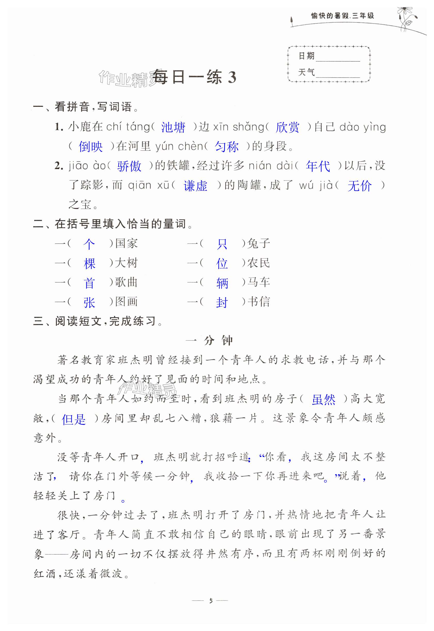 注:目前有些书本章节名称可能整理的还不是很完善,但都是按照顺序排列的,请同学们按照顺序仔细查找。练习册 2024年愉快的暑假江苏凤凰美术出版社三年级 答案主要是用来给同学们做完题方便对答案用的,请勿直接抄袭。