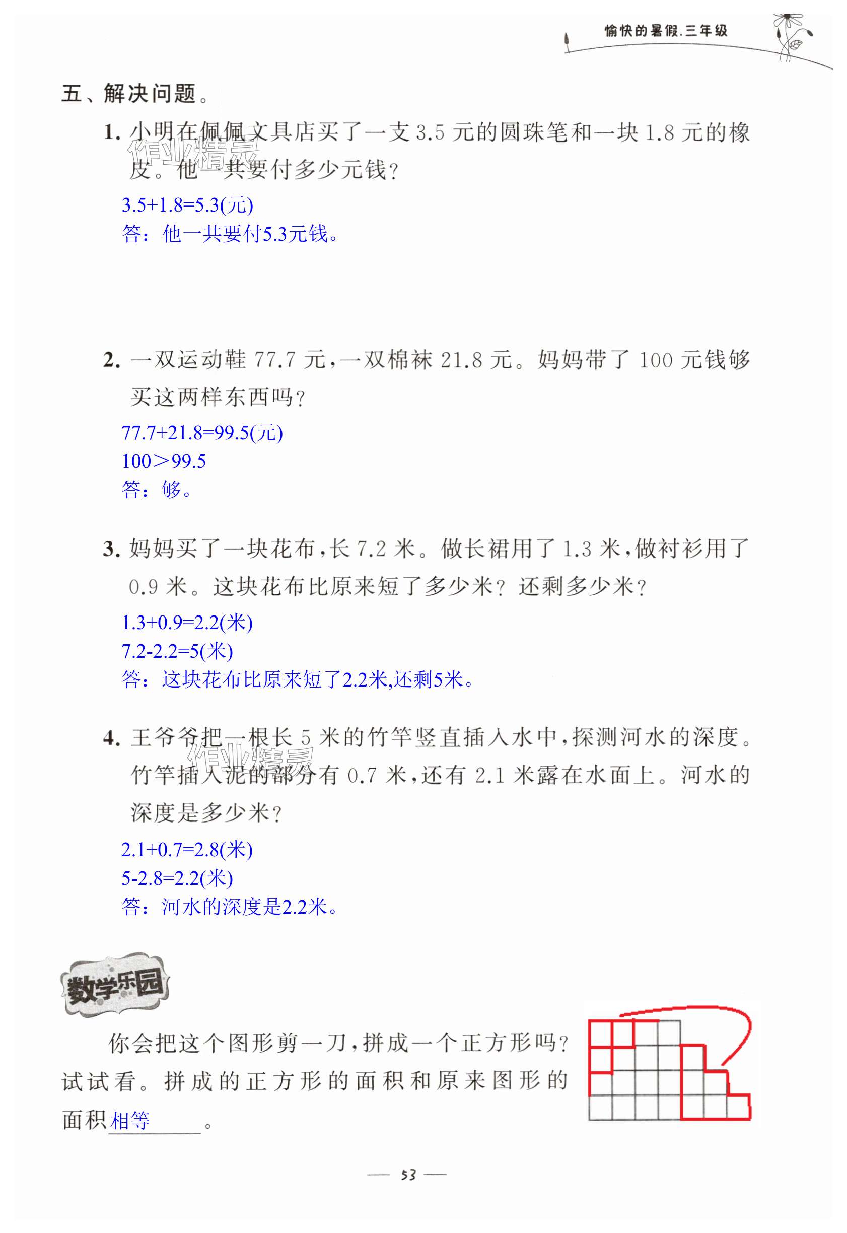 2024年愉快的暑假江苏凤凰美术出版社三年级