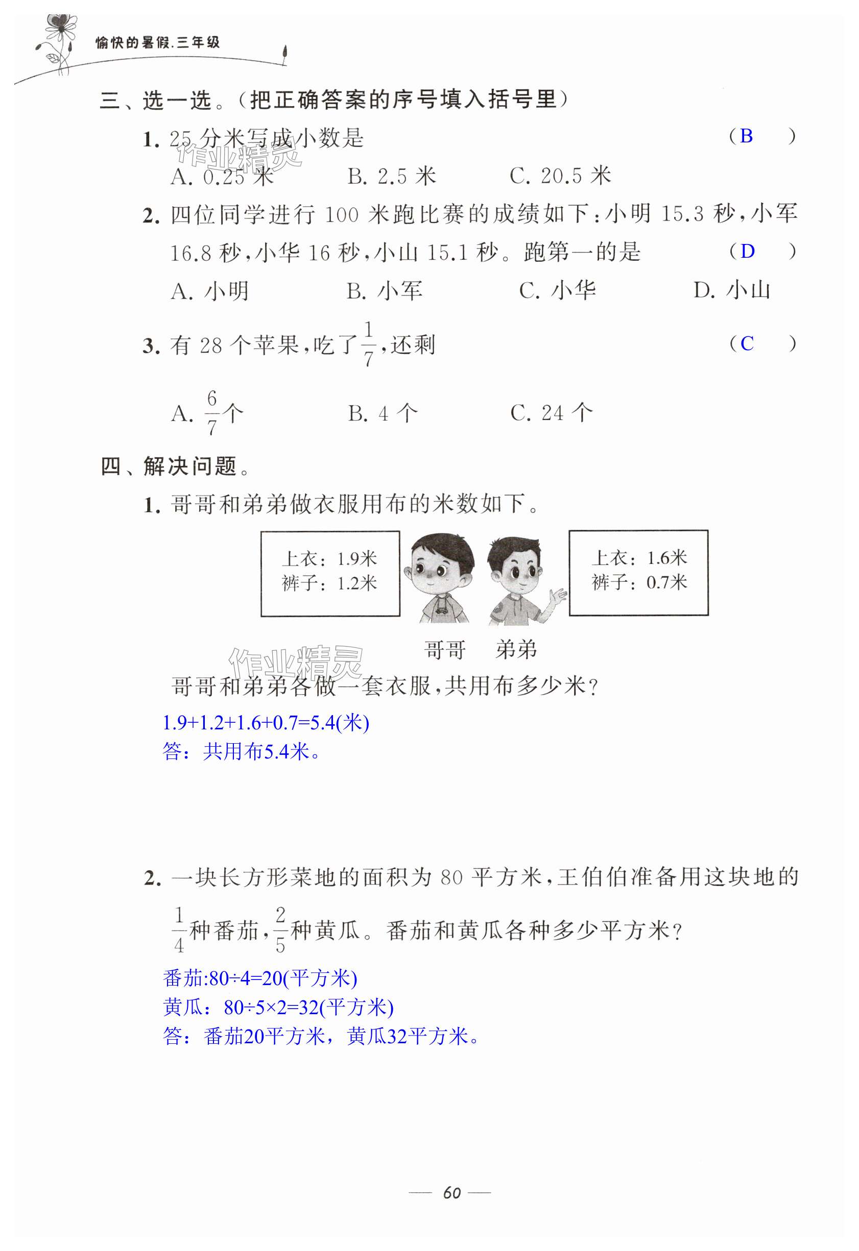 注:目前有些书本章节名称可能整理的还不是很完善,但都是按照顺序排列的,请同学们按照顺序仔细查找。练习册 2024年愉快的暑假江苏凤凰美术出版社三年级 答案主要是用来给同学们做完题方便对答案用的,请勿直接抄袭。