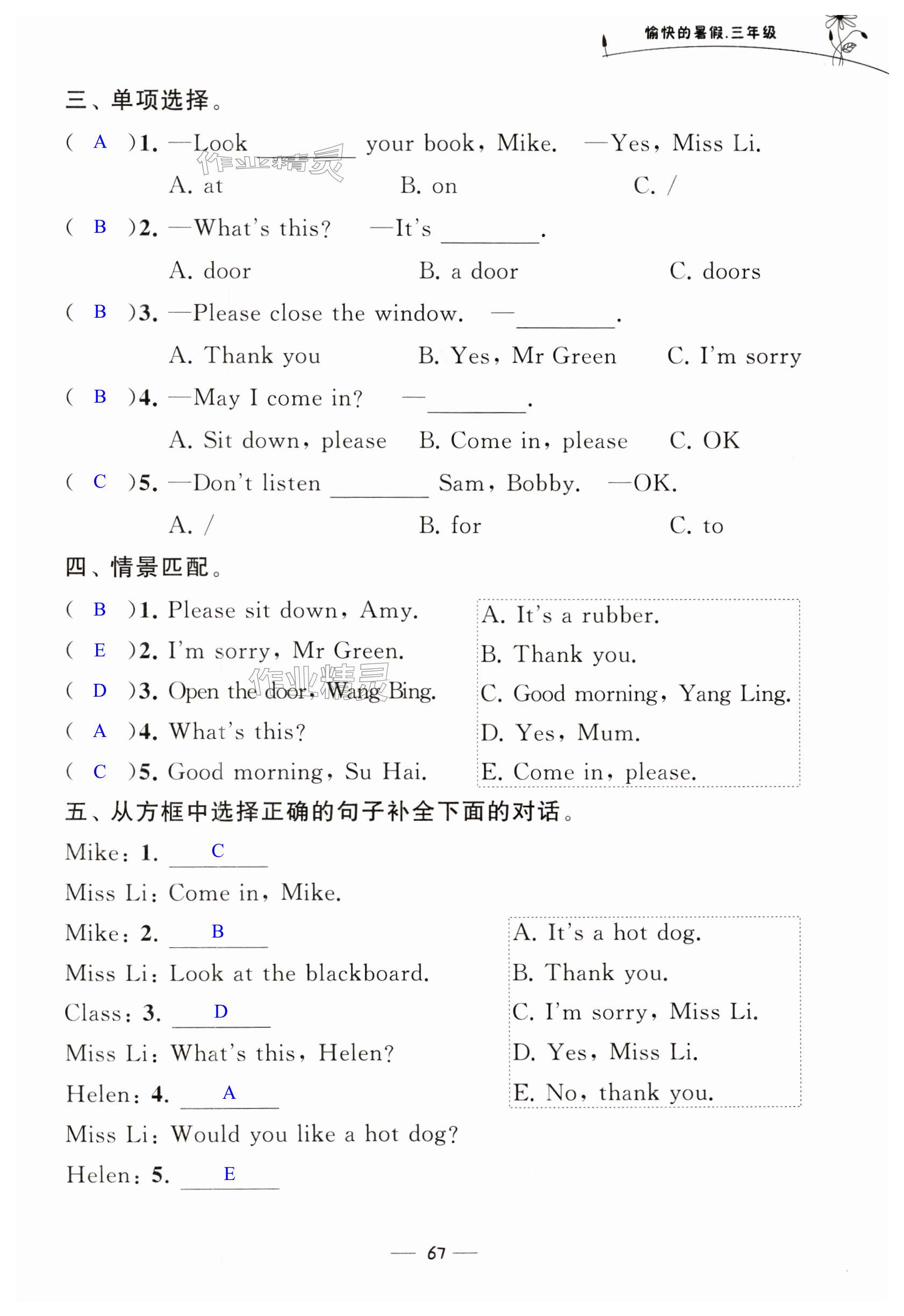 注:目前有些书本章节名称可能整理的还不是很完善,但都是按照顺序排列的,请同学们按照顺序仔细查找。练习册 2024年愉快的暑假江苏凤凰美术出版社三年级 答案主要是用来给同学们做完题方便对答案用的,请勿直接抄袭。