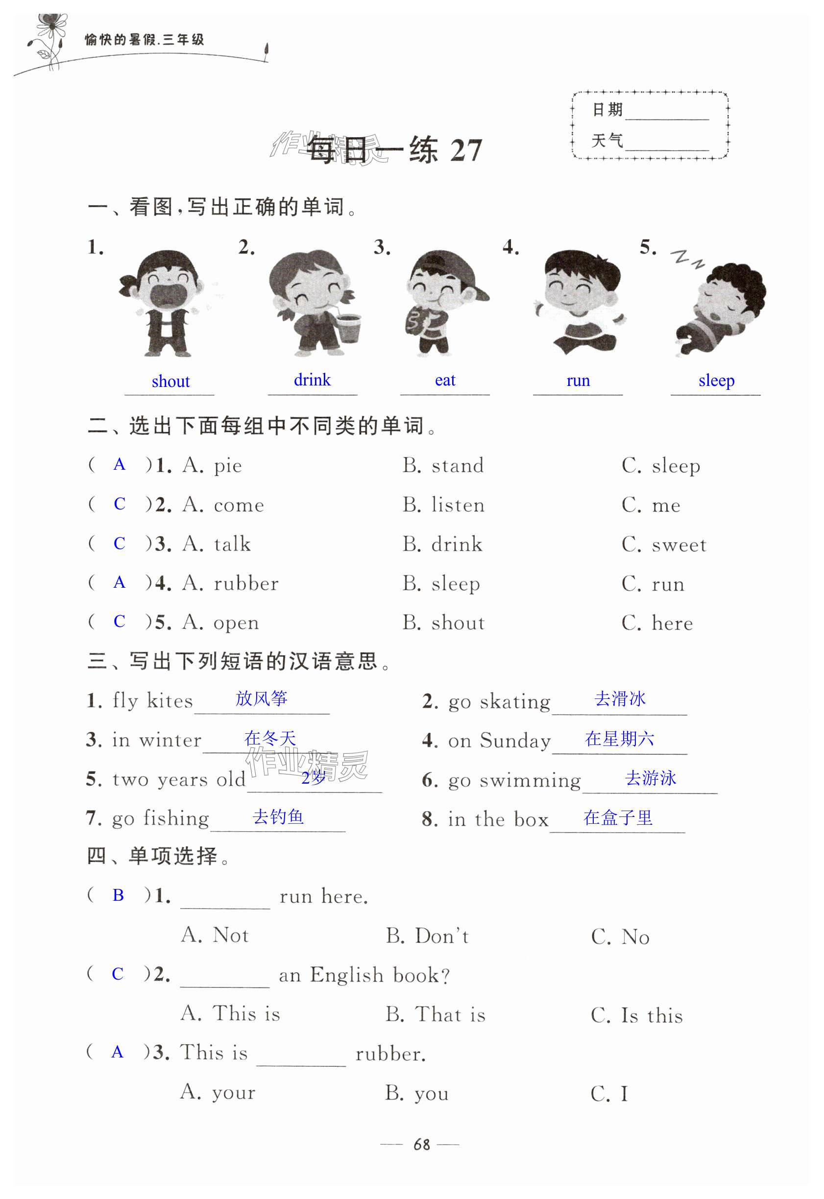 注:目前有些书本章节名称可能整理的还不是很完善,但都是按照顺序排列的,请同学们按照顺序仔细查找。练习册 2024年愉快的暑假江苏凤凰美术出版社三年级 答案主要是用来给同学们做完题方便对答案用的,请勿直接抄袭。