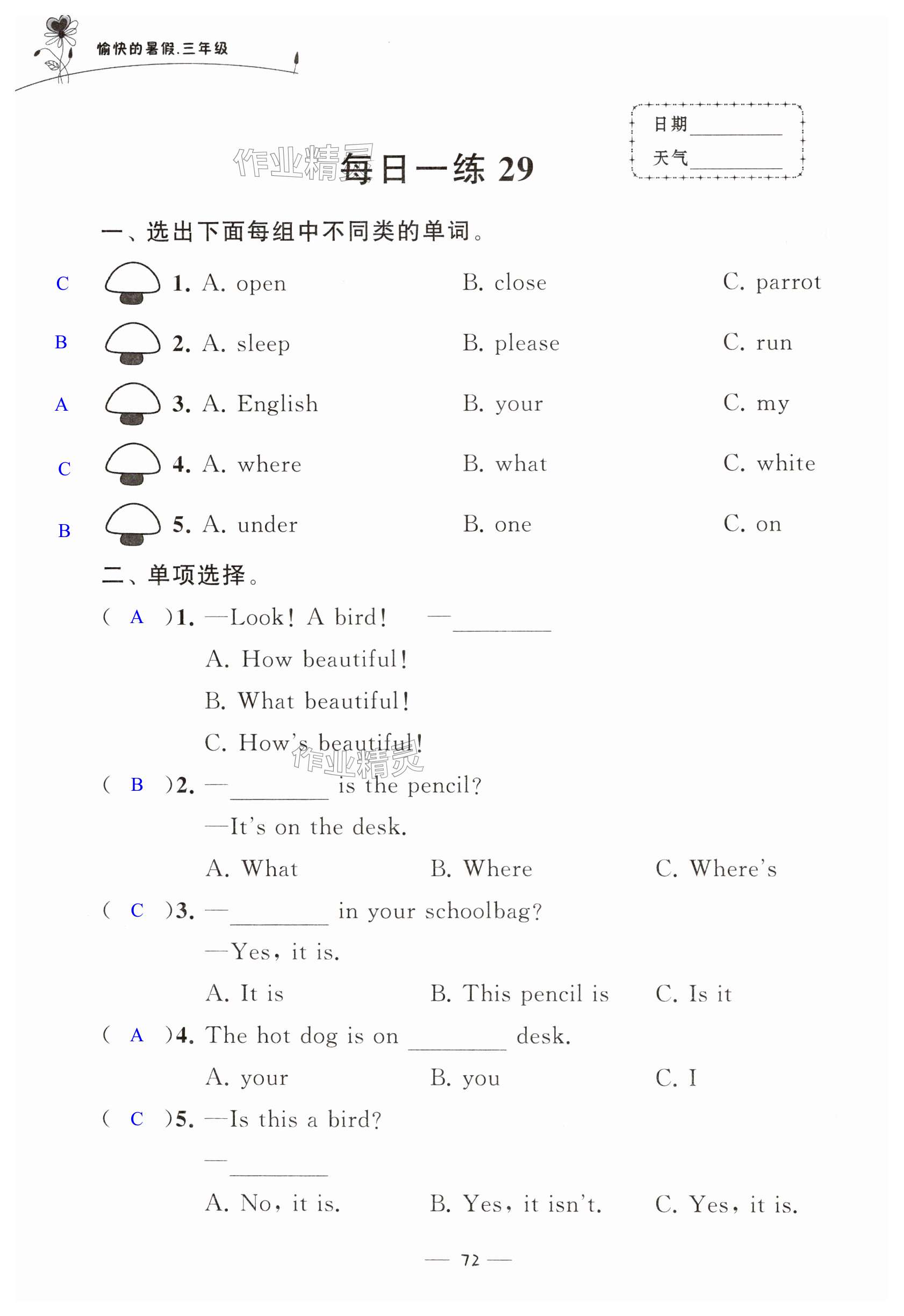 注:目前有些书本章节名称可能整理的还不是很完善,但都是按照顺序排列的,请同学们按照顺序仔细查找。练习册 2024年愉快的暑假江苏凤凰美术出版社三年级 答案主要是用来给同学们做完题方便对答案用的,请勿直接抄袭。