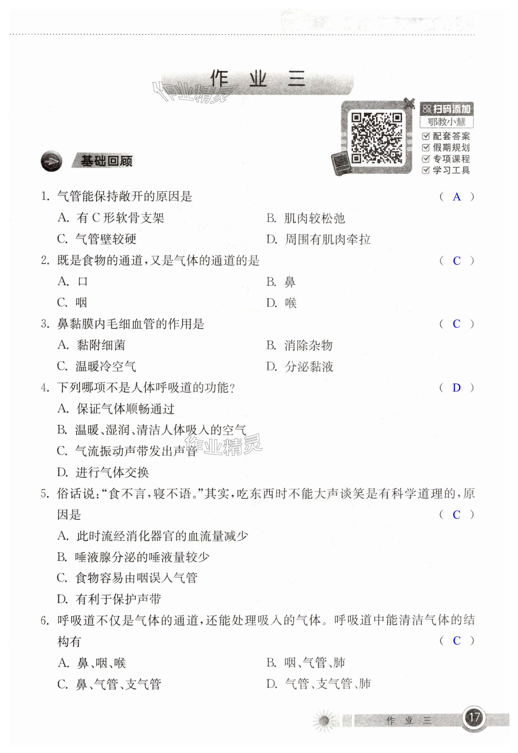 注:目前有些书本章节名称可能整理的还不是很完善,但都是按照顺序排列的,请同学们按照顺序仔细查找。练习册 2024年长江作业本暑假作业七年级生物人教版湖北教育出版社 答案主要是用来给同学们做完题方便对答案用的,请勿直接抄袭。