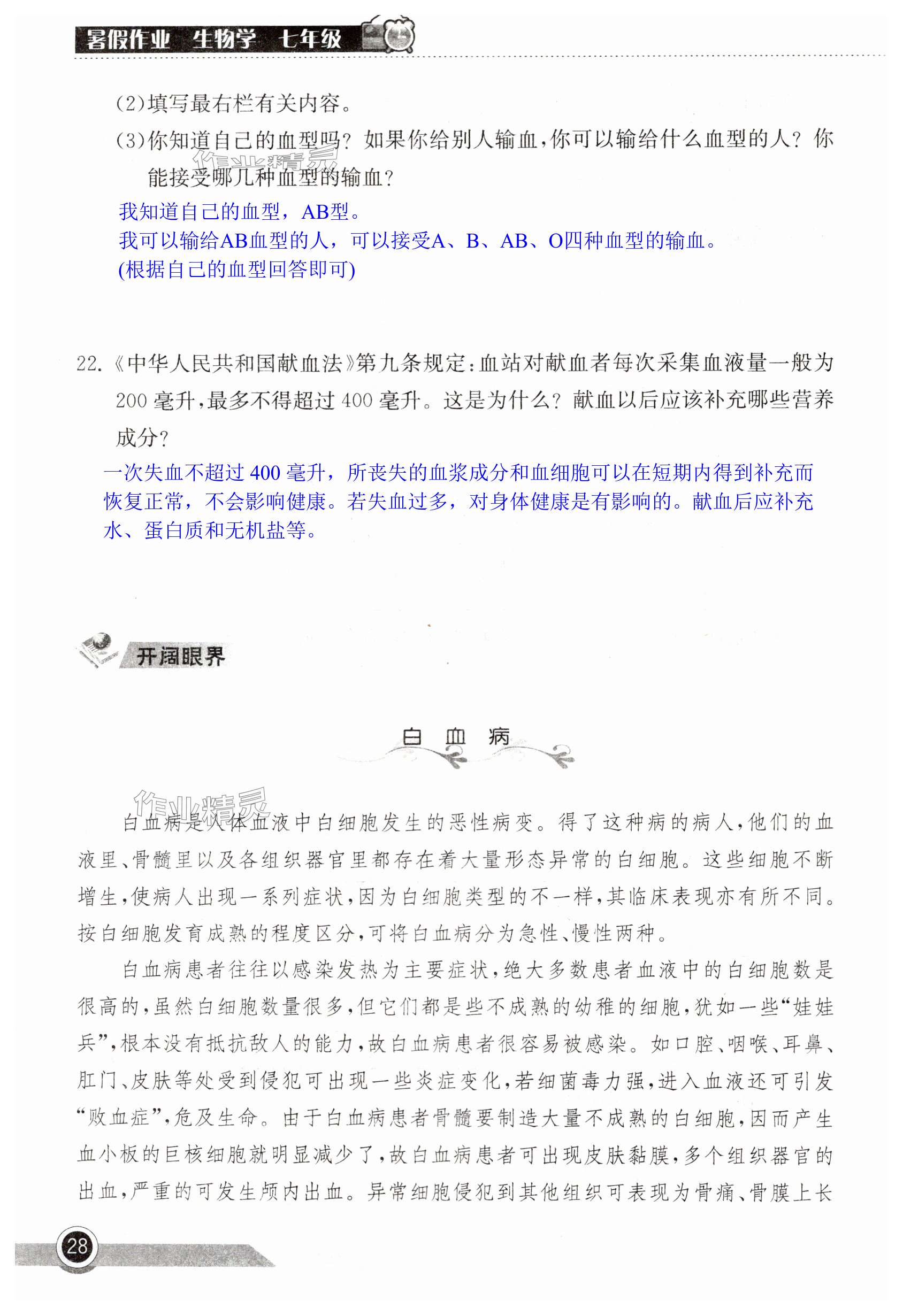 注:目前有些书本章节名称可能整理的还不是很完善,但都是按照顺序排列的,请同学们按照顺序仔细查找。练习册 2024年长江作业本暑假作业七年级生物人教版湖北教育出版社 答案主要是用来给同学们做完题方便对答案用的,请勿直接抄袭。