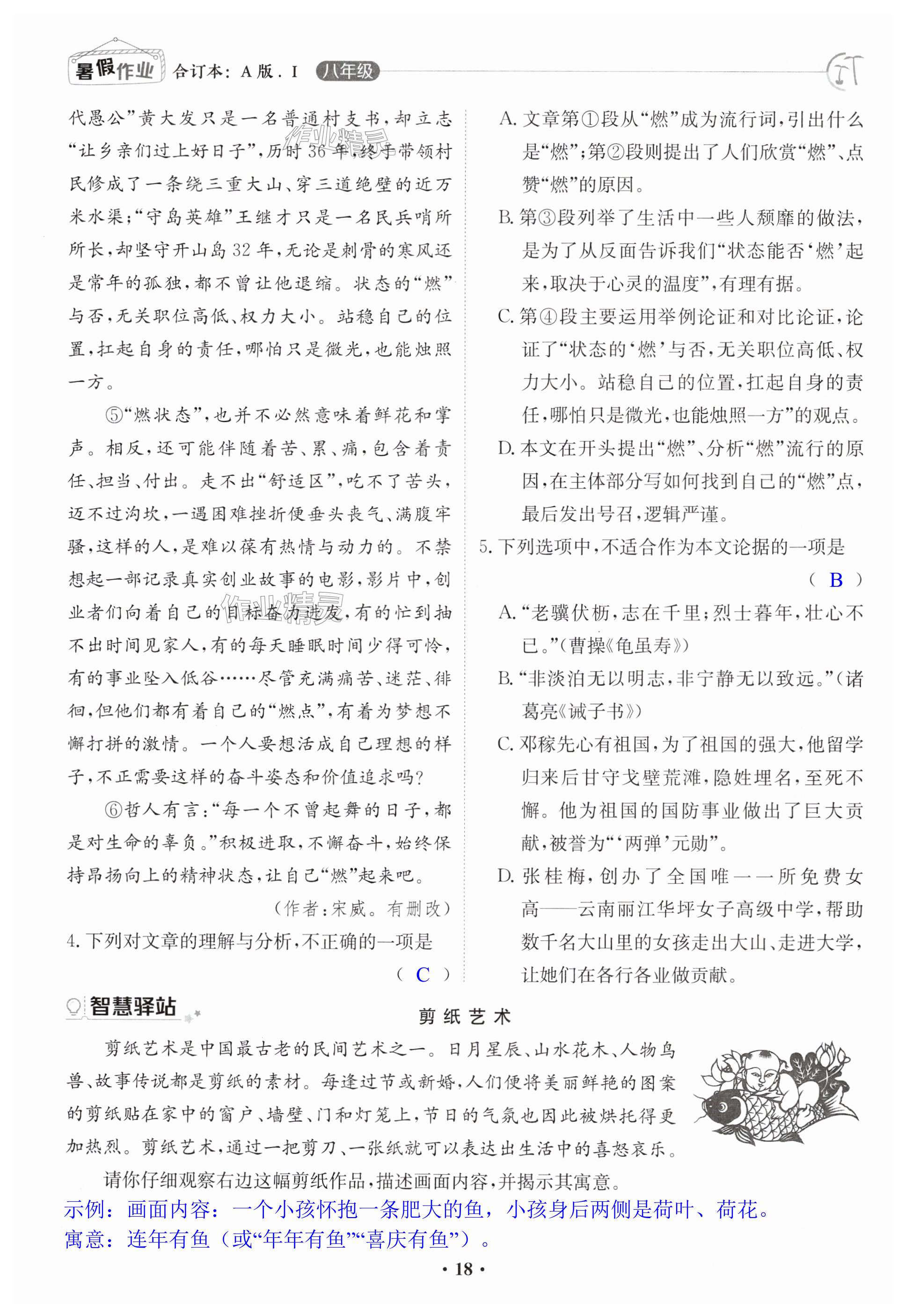注:目前有些书本章节名称可能整理的还不是很完善,但都是按照顺序排列的,请同学们按照顺序仔细查找。练习册 2024年暑假作业江西高校出版社八年级合订本A版I 答案主要是用来给同学们做完题方便对答案用的,请勿直接抄袭。