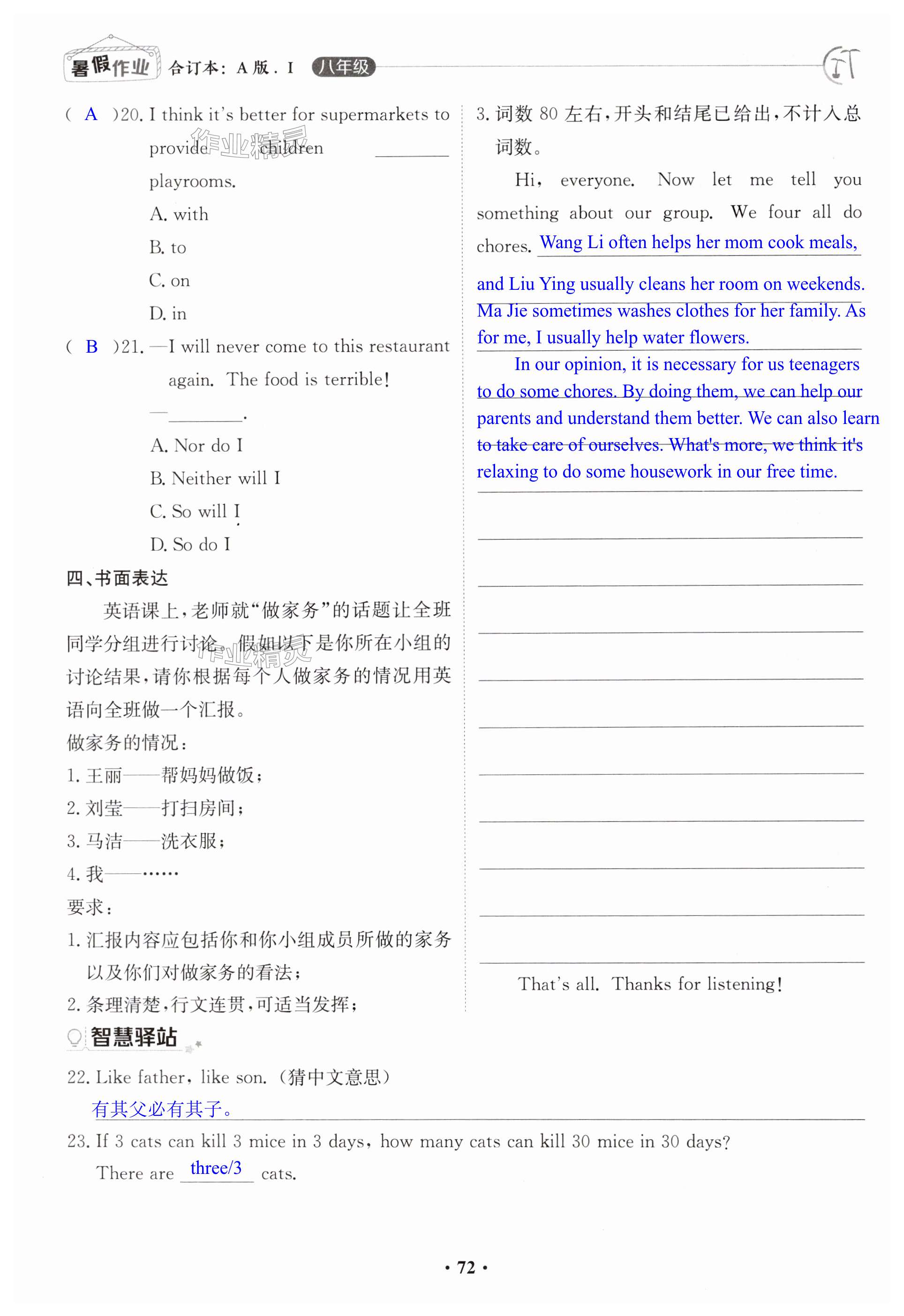 注:目前有些书本章节名称可能整理的还不是很完善,但都是按照顺序排列的,请同学们按照顺序仔细查找。练习册 2024年暑假作业江西高校出版社八年级合订本A版I 答案主要是用来给同学们做完题方便对答案用的,请勿直接抄袭。