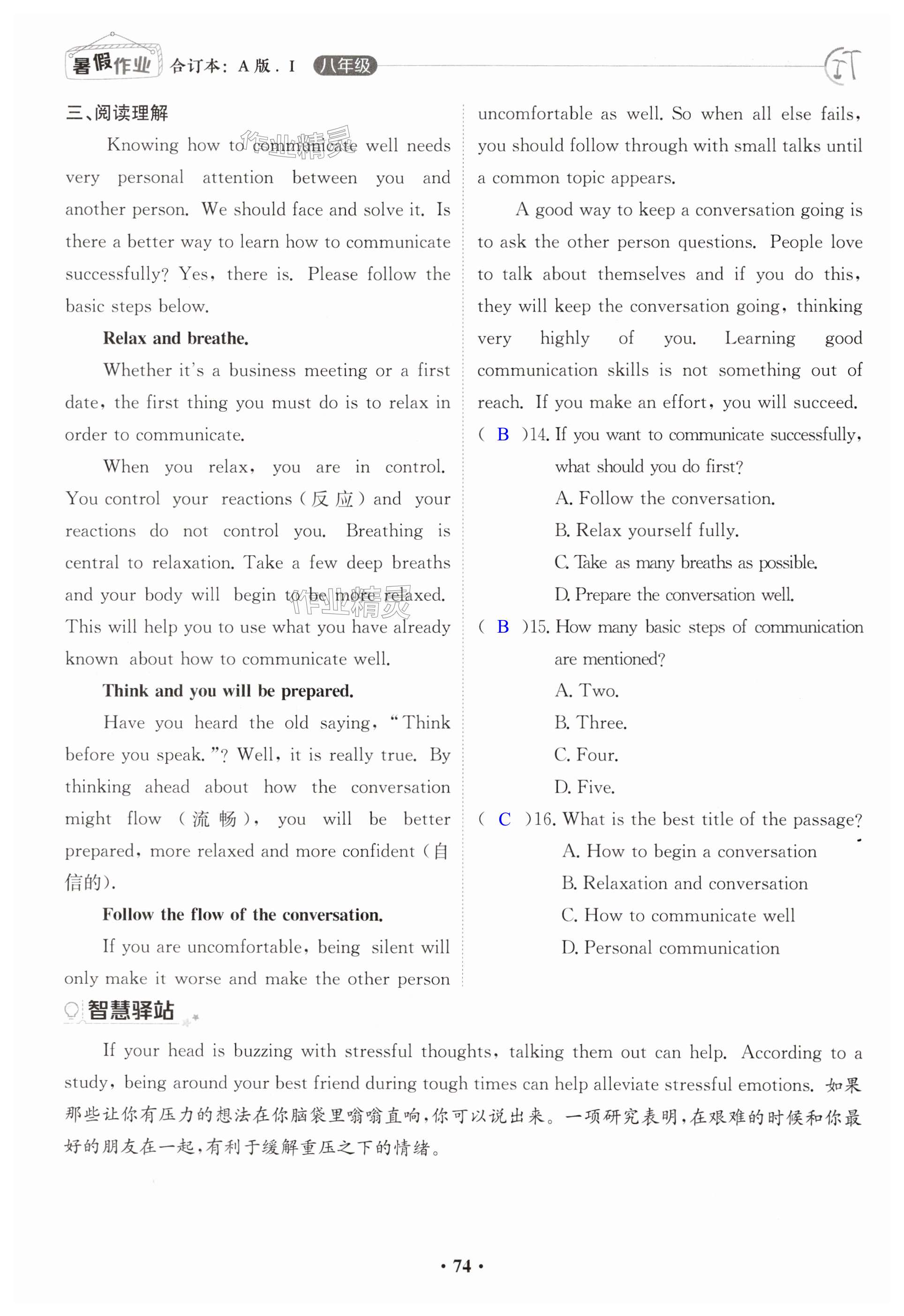 注:目前有些书本章节名称可能整理的还不是很完善,但都是按照顺序排列的,请同学们按照顺序仔细查找。练习册 2024年暑假作业江西高校出版社八年级合订本A版I 答案主要是用来给同学们做完题方便对答案用的,请勿直接抄袭。