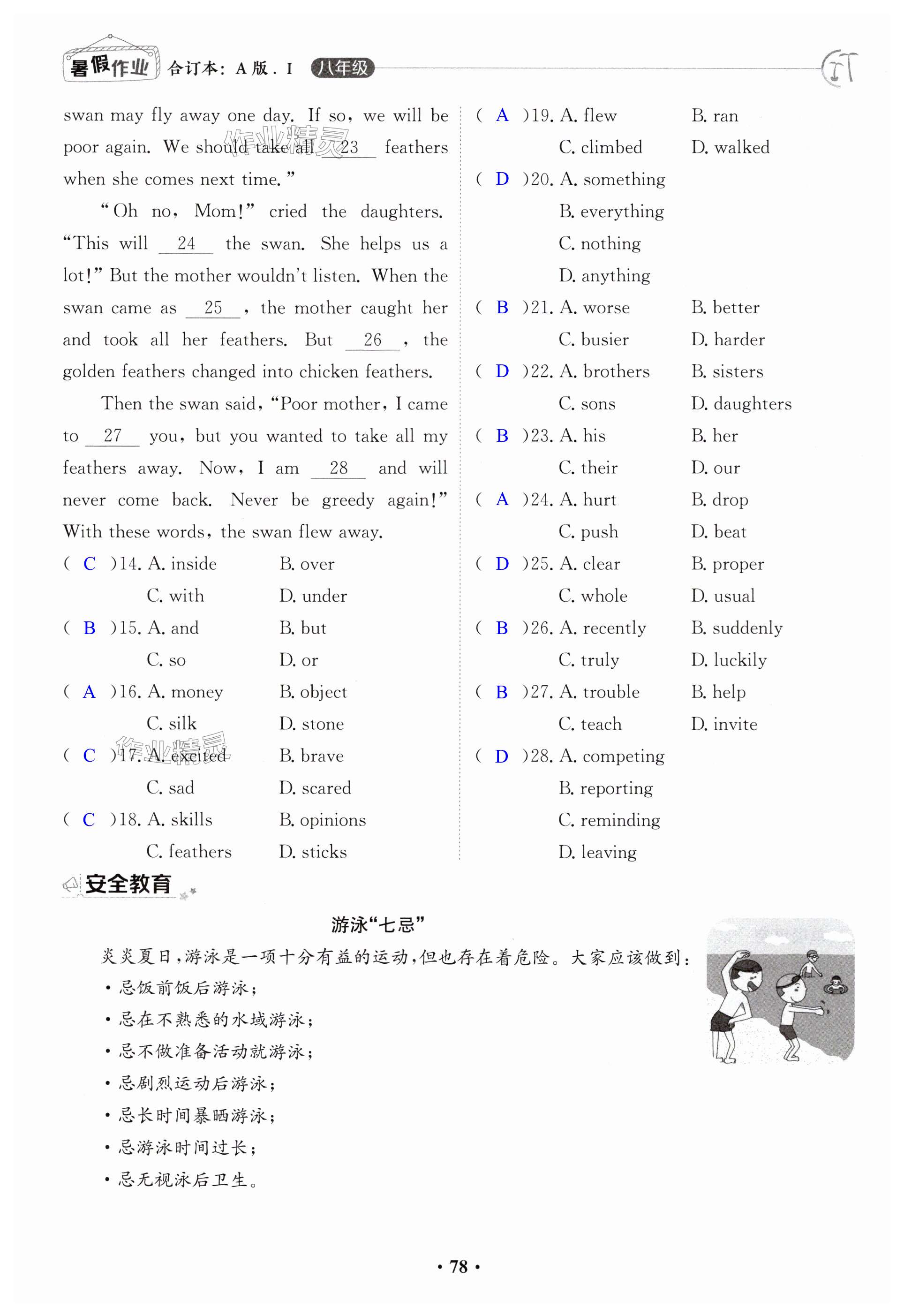 注:目前有些书本章节名称可能整理的还不是很完善,但都是按照顺序排列的,请同学们按照顺序仔细查找。练习册 2024年暑假作业江西高校出版社八年级合订本A版I 答案主要是用来给同学们做完题方便对答案用的,请勿直接抄袭。