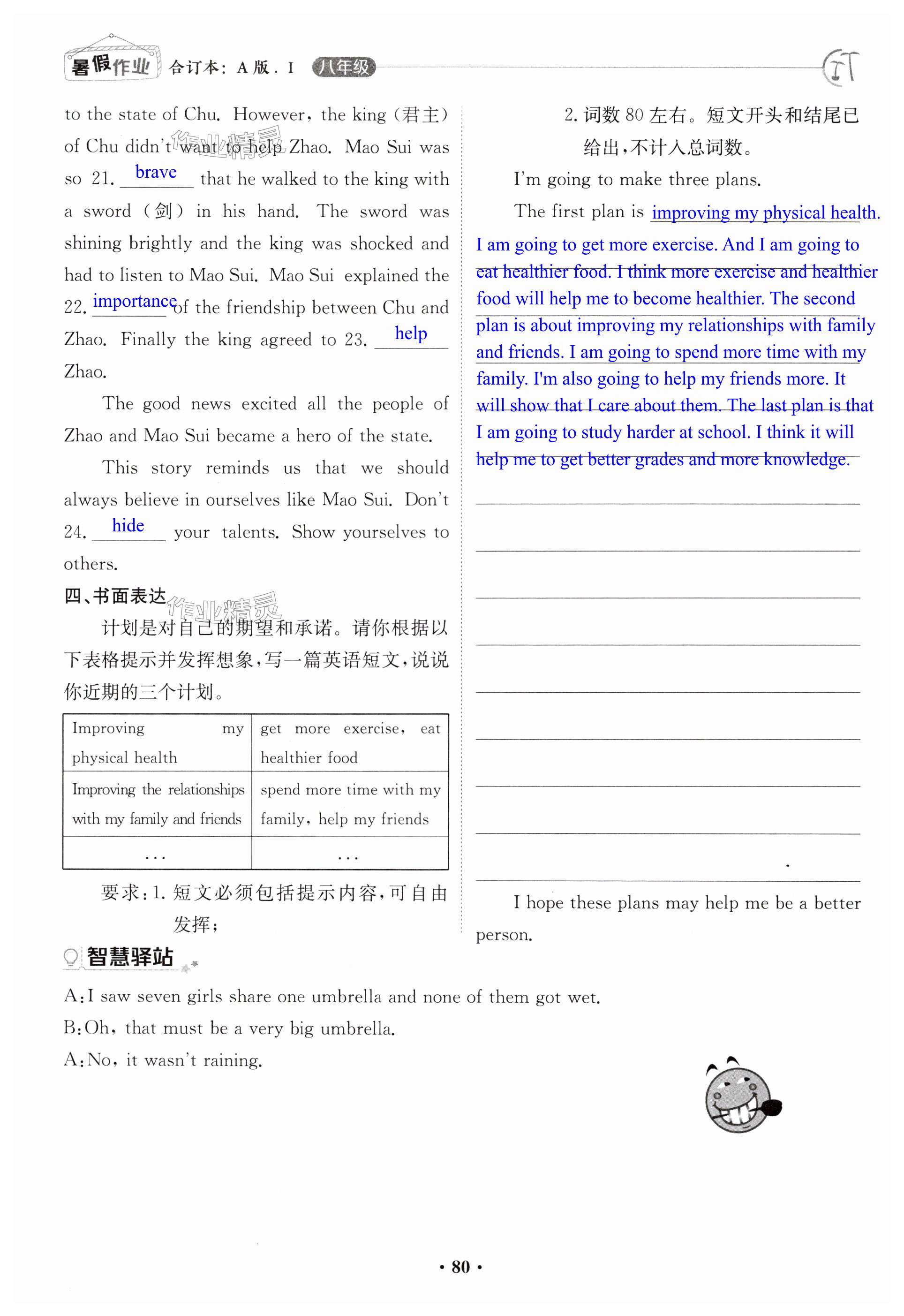 2024年暑假作业江西高校出版社八年级合订本A版I