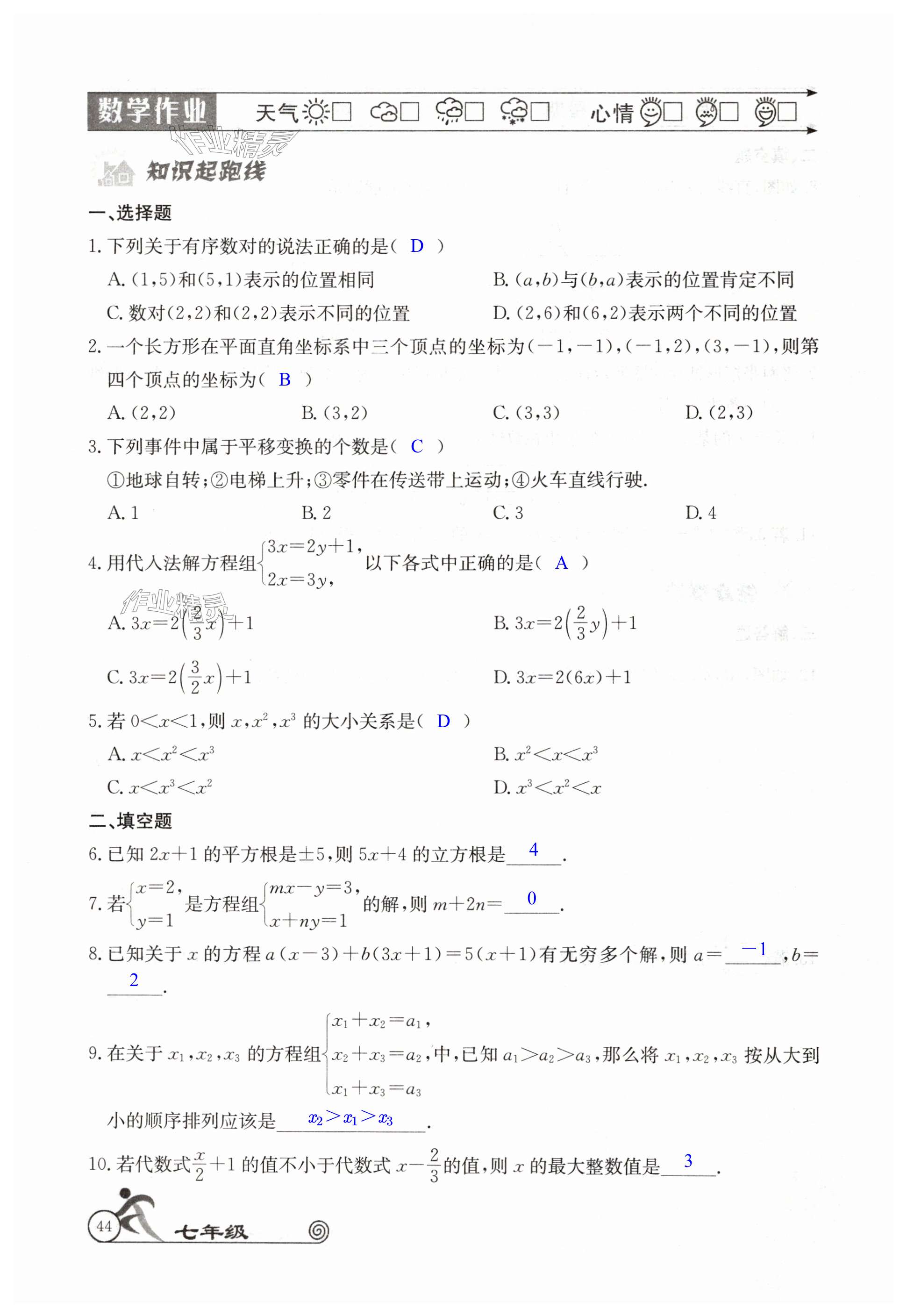 相关练习册答案