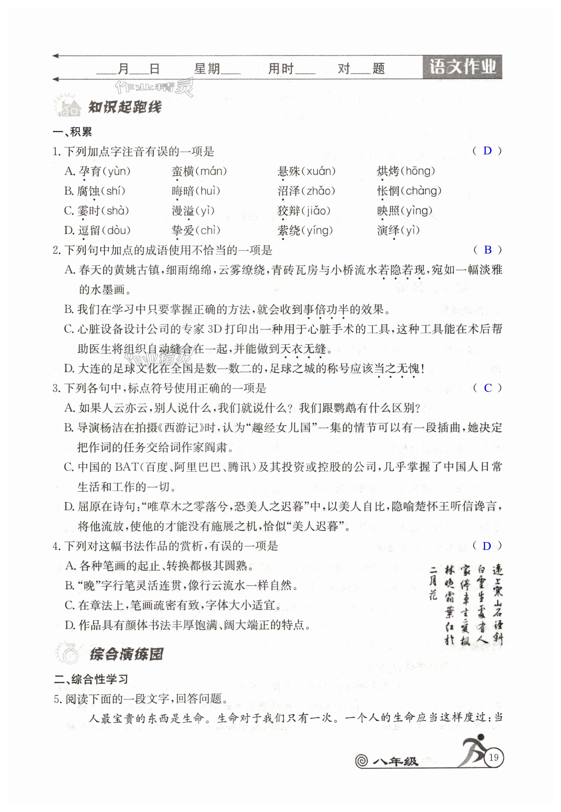 注:目前有些书本章节名称可能整理的还不是很完善,但都是按照顺序排列的,请同学们按照顺序仔细查找。练习册 2024年快乐假期暑假作业八年级语数英物B版合订本人教版 答案主要是用来给同学们做完题方便对答案用的,请勿直接抄袭。