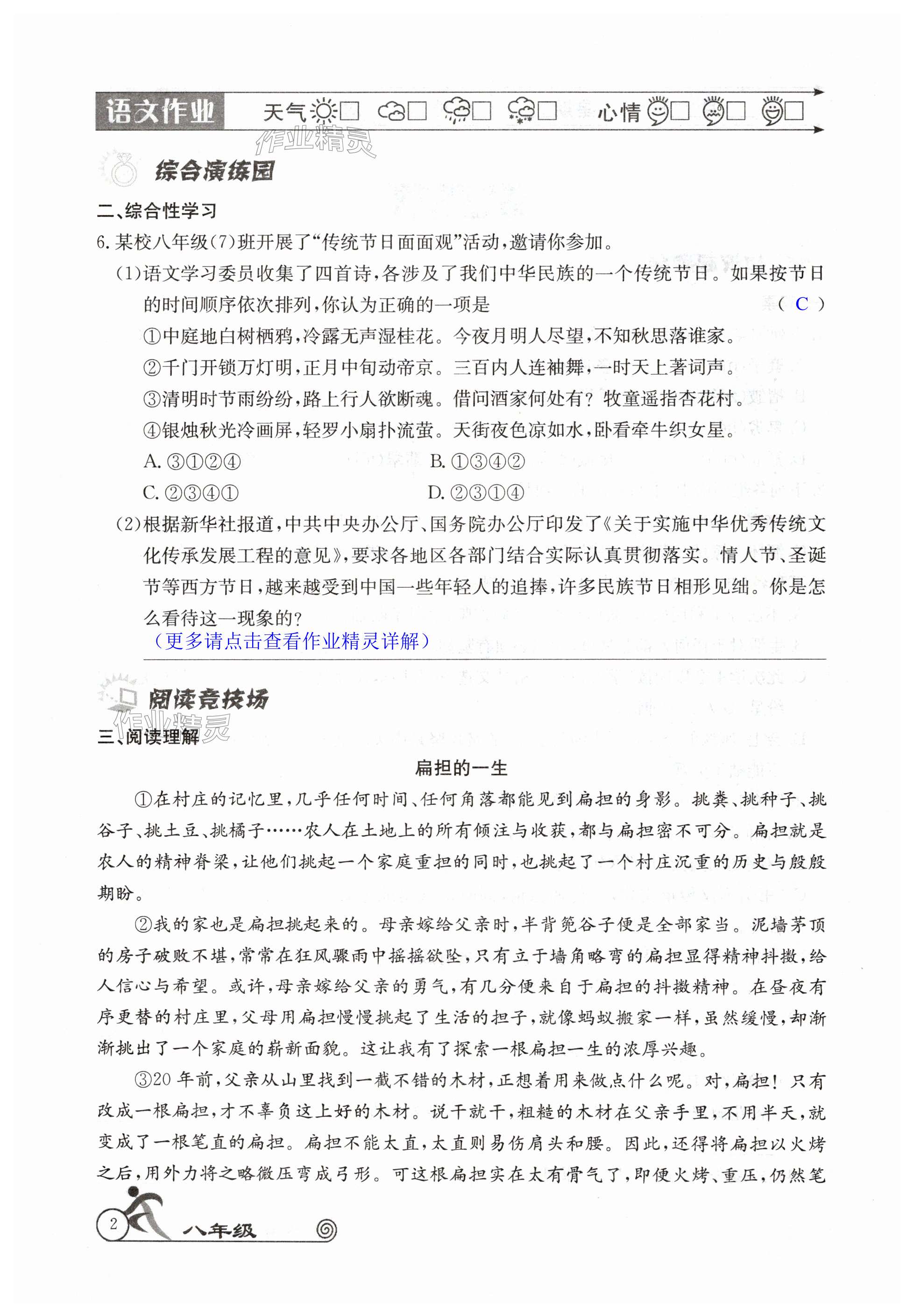 注:目前有些书本章节名称可能整理的还不是很完善,但都是按照顺序排列的,请同学们按照顺序仔细查找。练习册 2024年快乐假期暑假作业八年级语数英物B版合订本人教版 答案主要是用来给同学们做完题方便对答案用的,请勿直接抄袭。