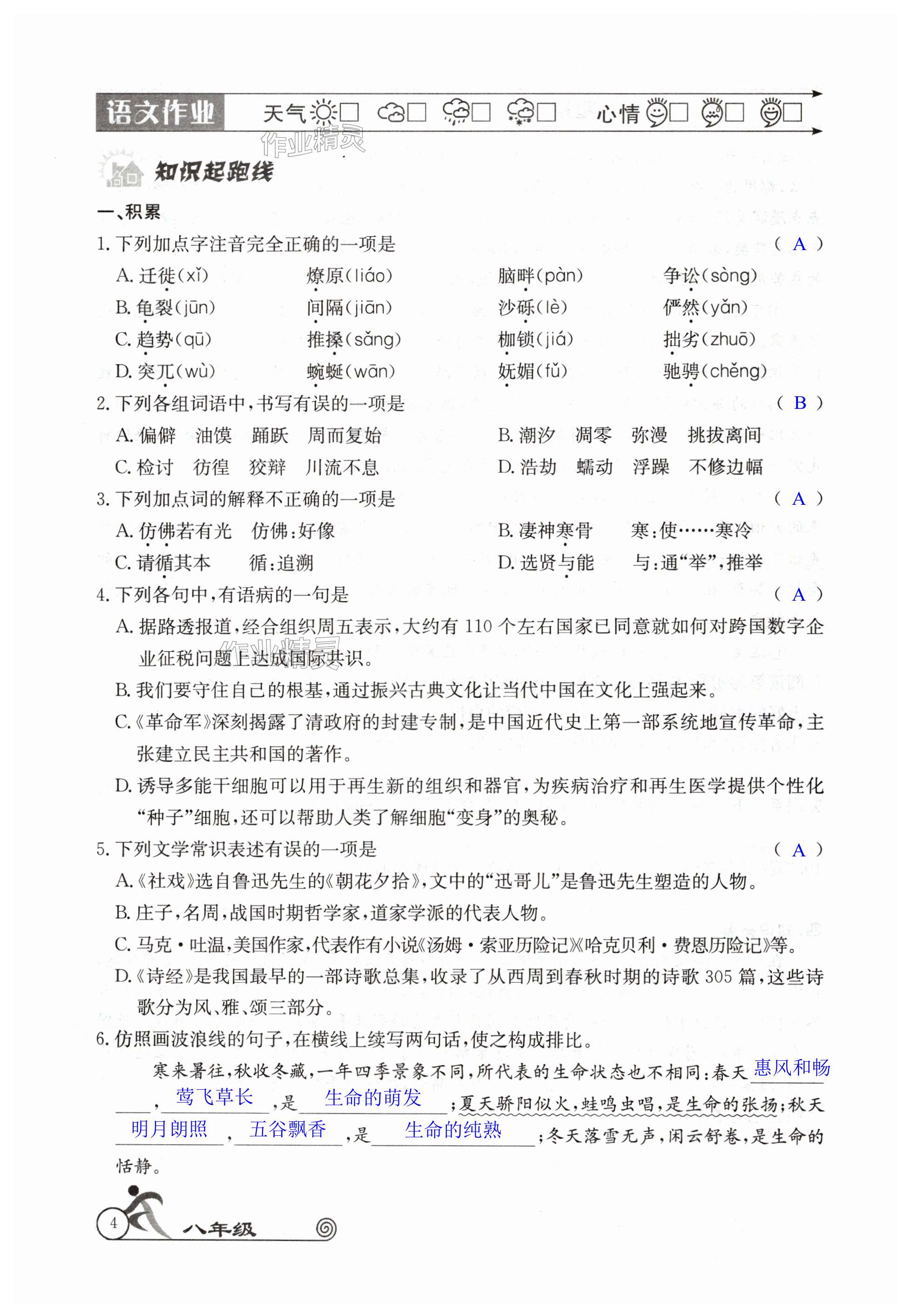 注:目前有些书本章节名称可能整理的还不是很完善,但都是按照顺序排列的,请同学们按照顺序仔细查找。练习册 2024年快乐假期暑假作业八年级语数英物B版合订本人教版 答案主要是用来给同学们做完题方便对答案用的,请勿直接抄袭。